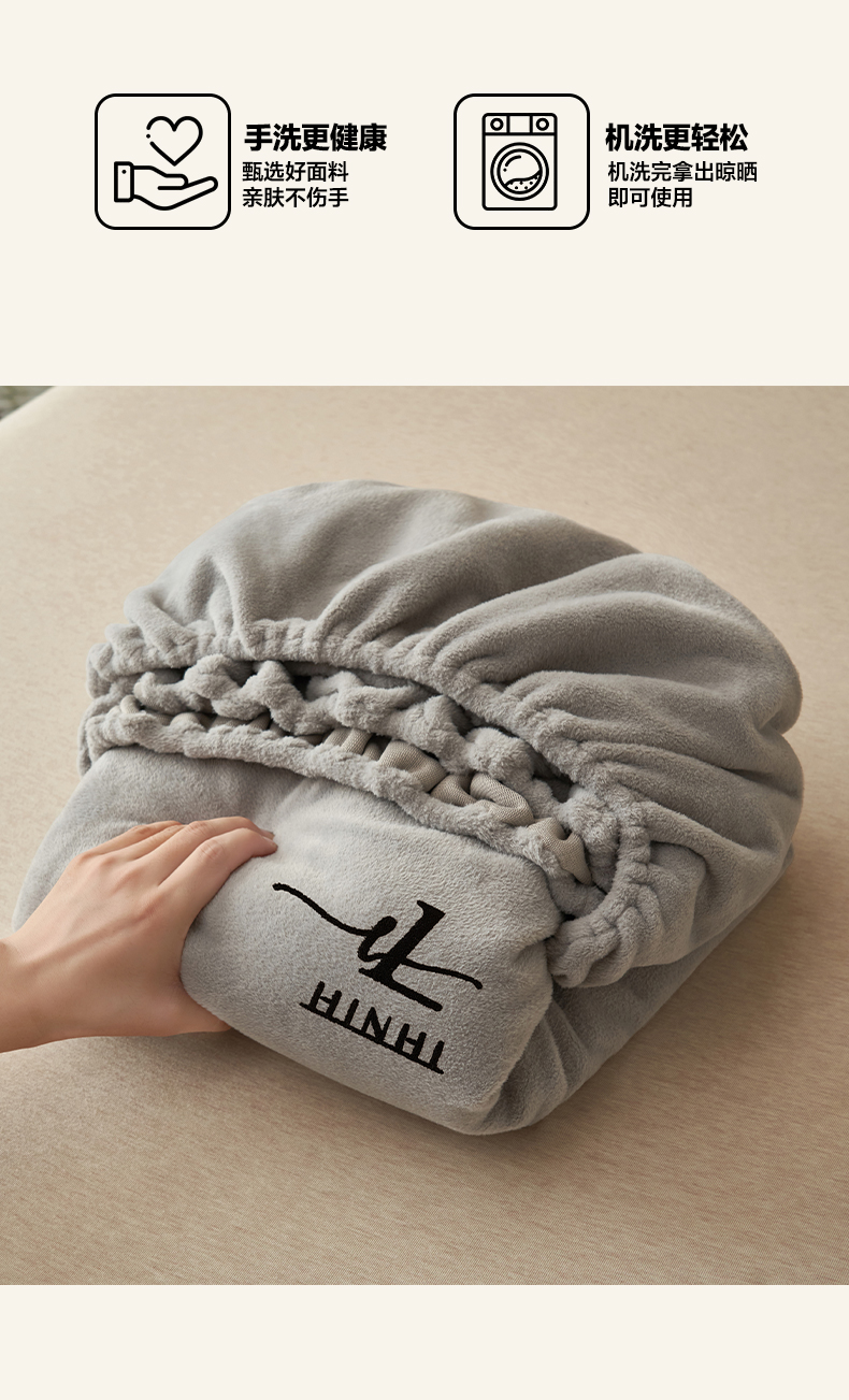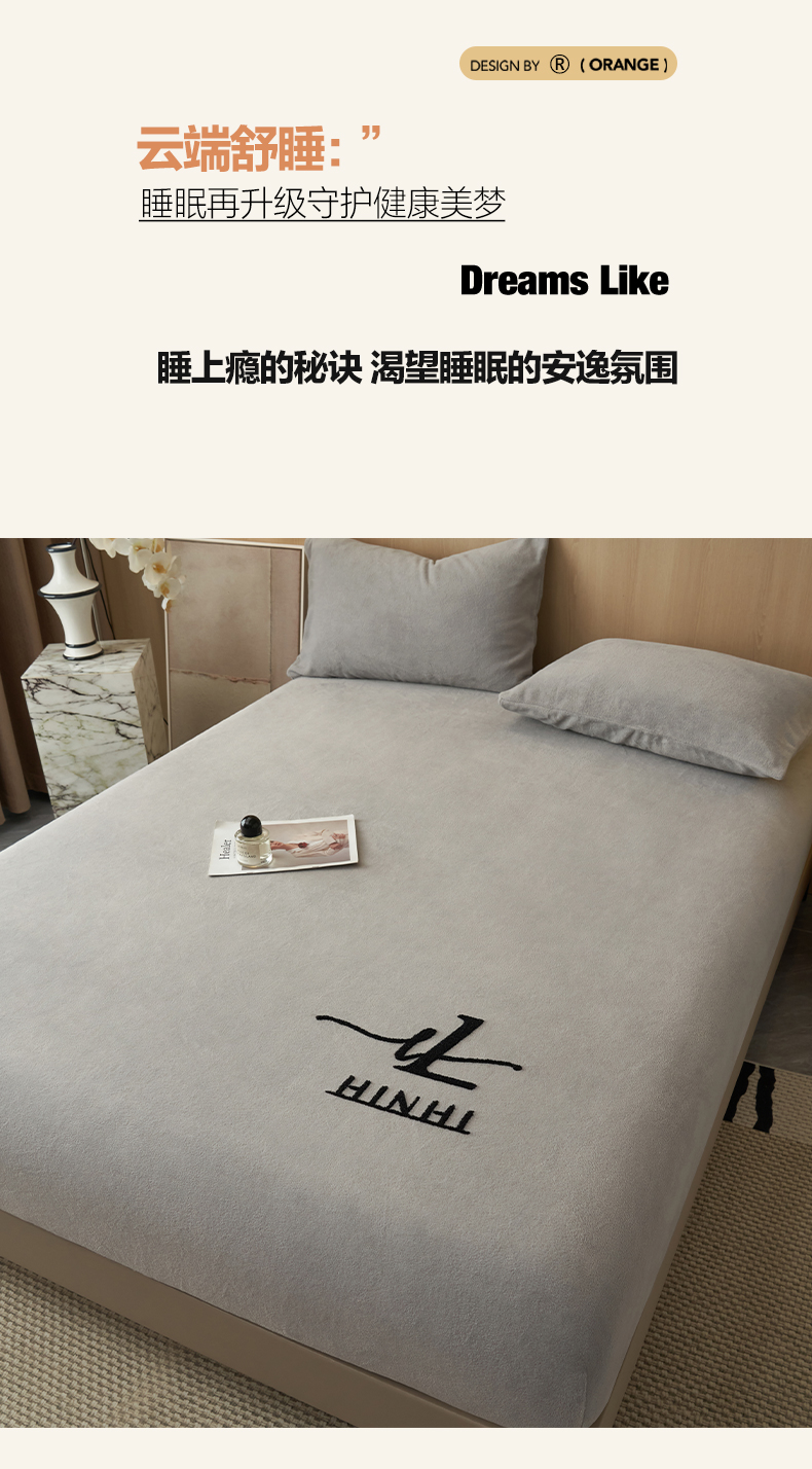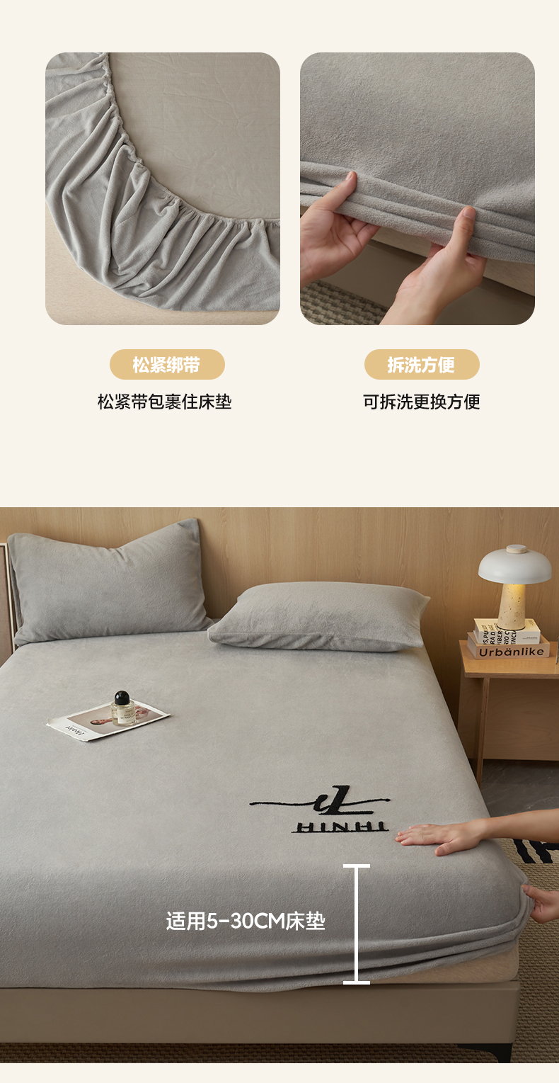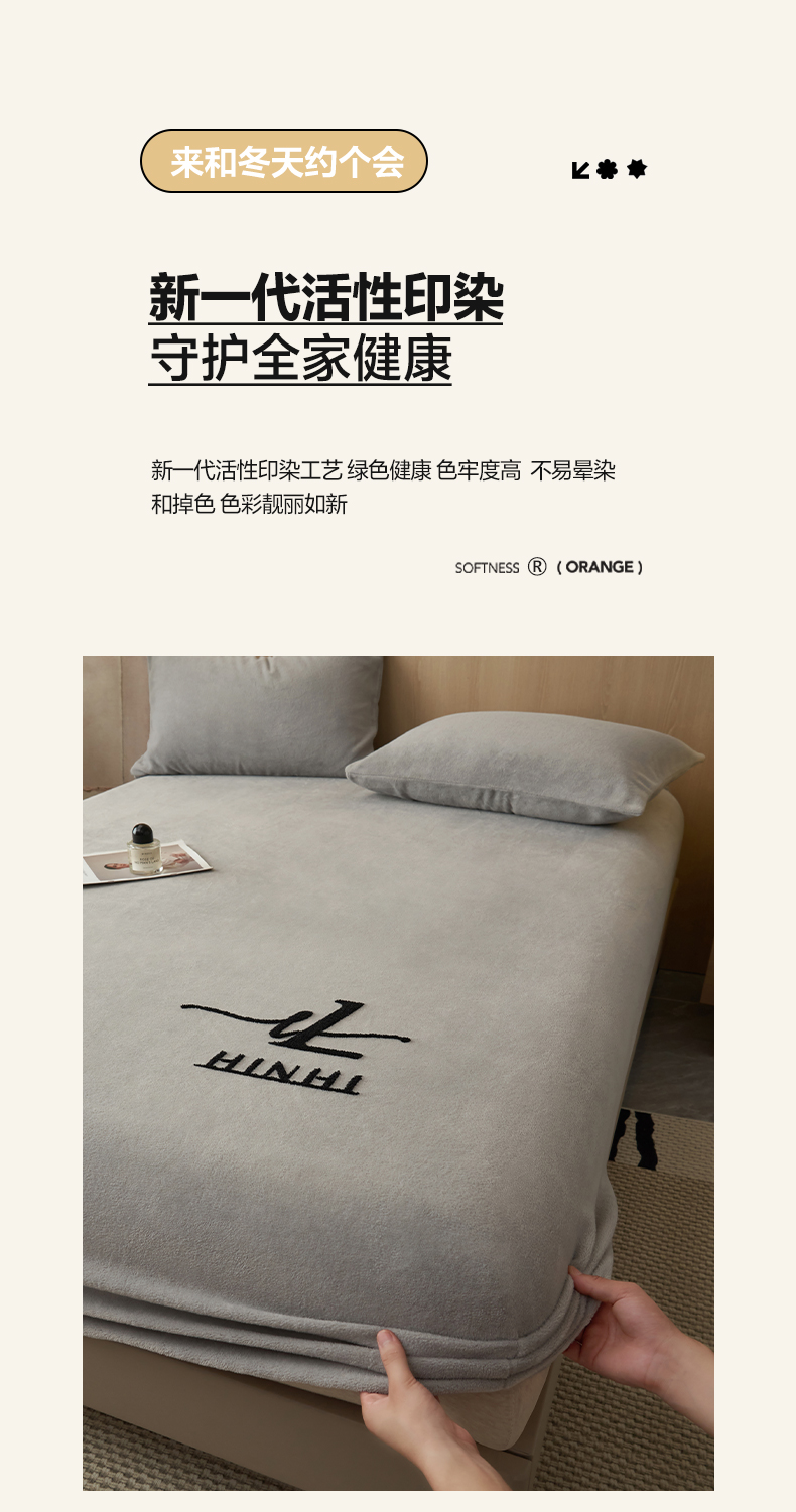 • 91家纺网 家纺一手货源 找家纺 早晨家纺 2025新款牛奶绒纯色毛巾绣暖绒床笠 时尚-浅灰