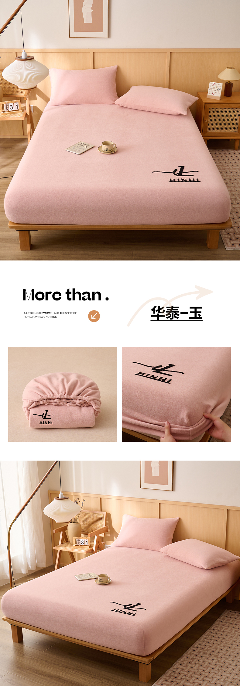 • 91家纺网 家纺一手货源 找家纺 早晨家纺 2025新款华泰款高克重牛奶绒仿羊绒毛巾绣单床笠 华泰-银灰