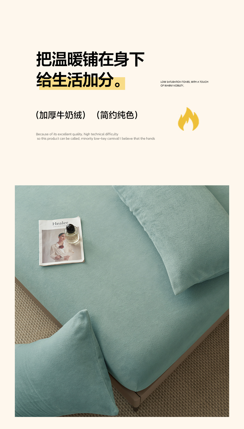 早晨家纺 2025新款高克重牛奶绒纯色单床笠 牛奶绒-宾利蓝