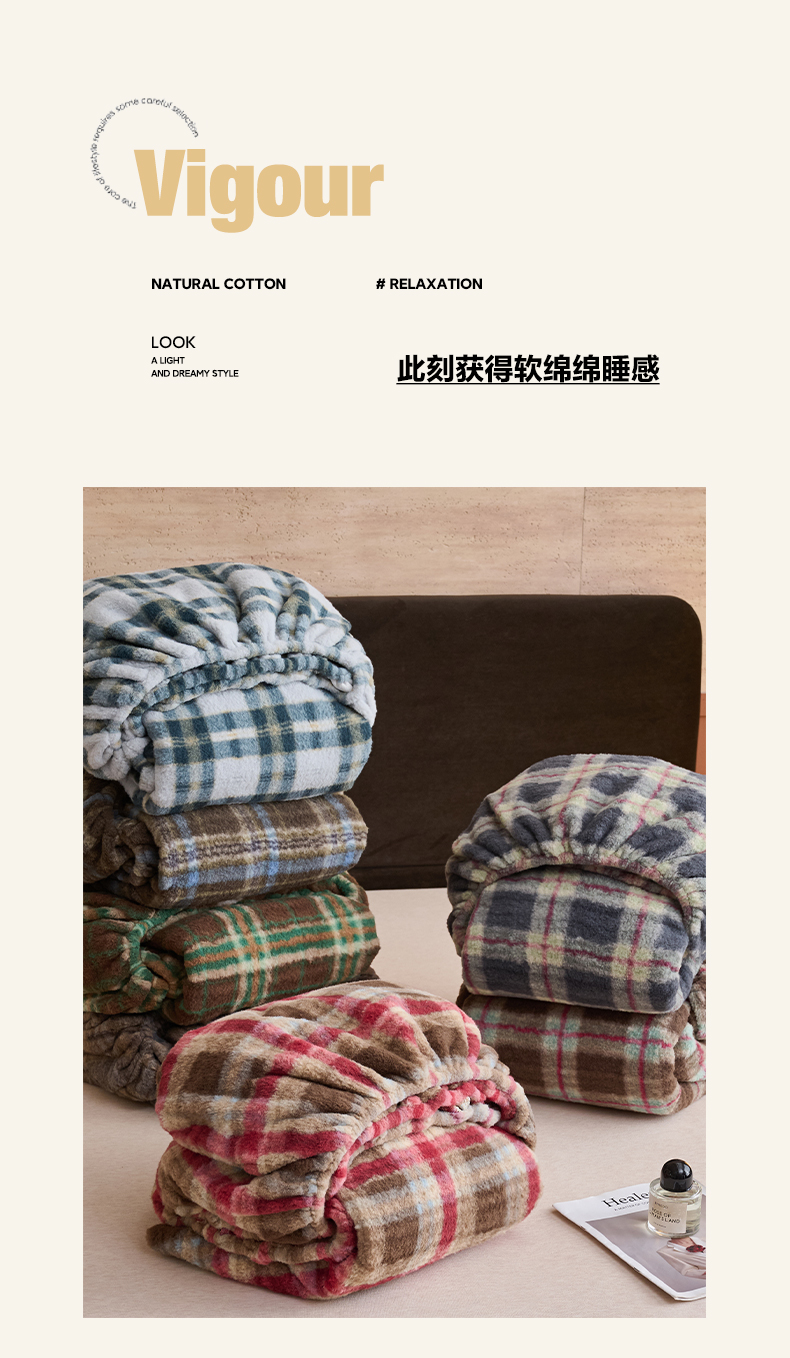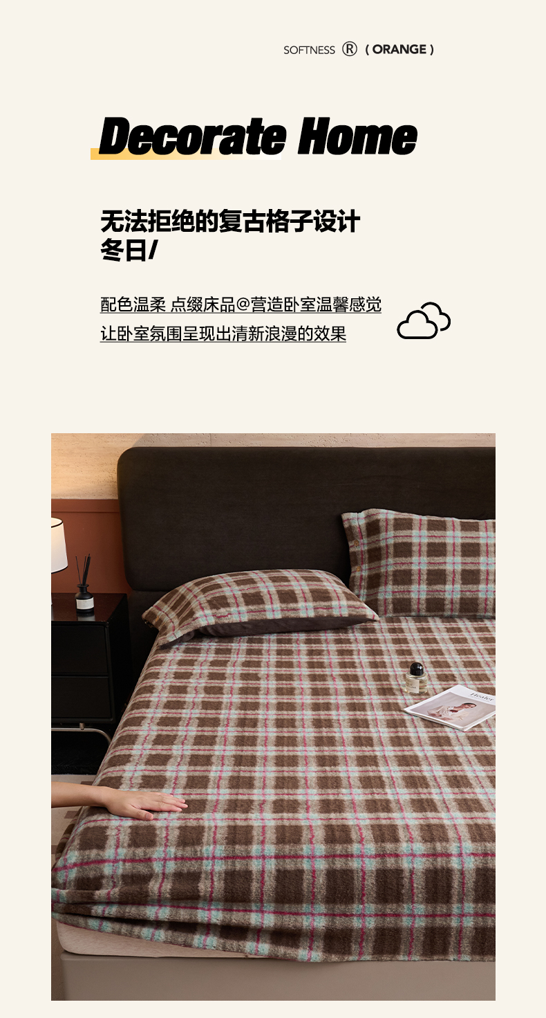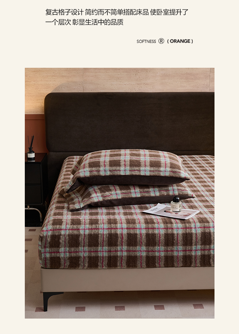 • 91家纺网 家纺一手货源 找家纺 早晨家纺 2025新款230g羊驼绒复古格牛奶绒床笠 威尔士亲格