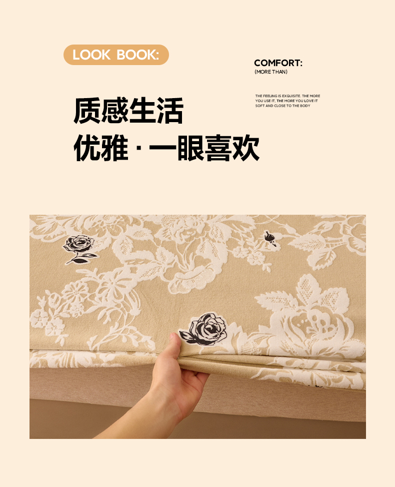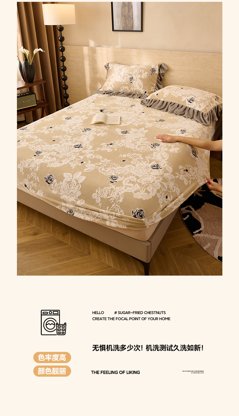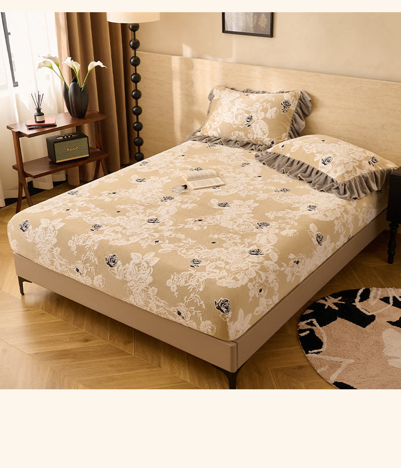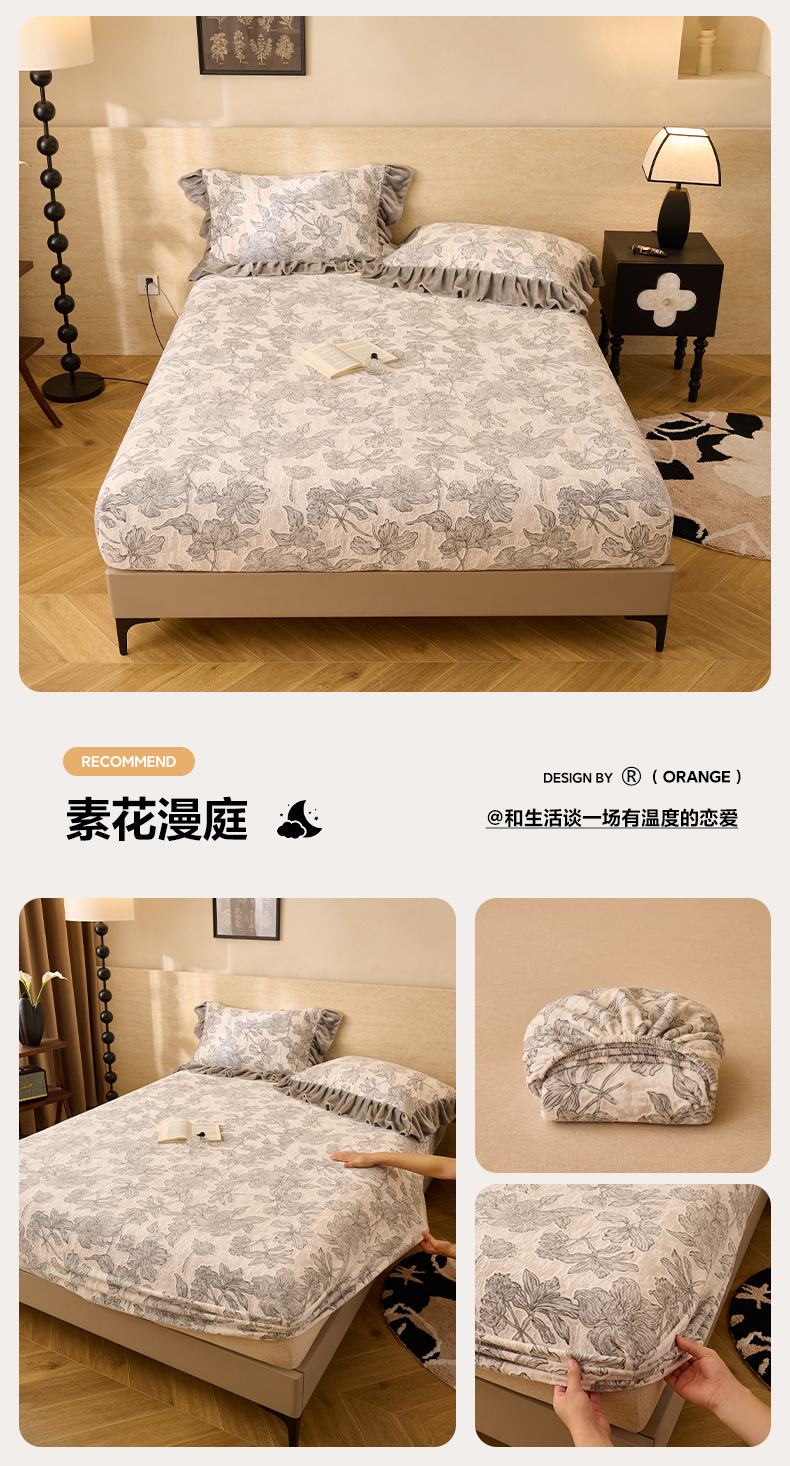 • 91家纺网 家纺一手货源 找家纺 早晨家纺 2025新款高克重牛奶绒烂花单床笠 雅庭花叙