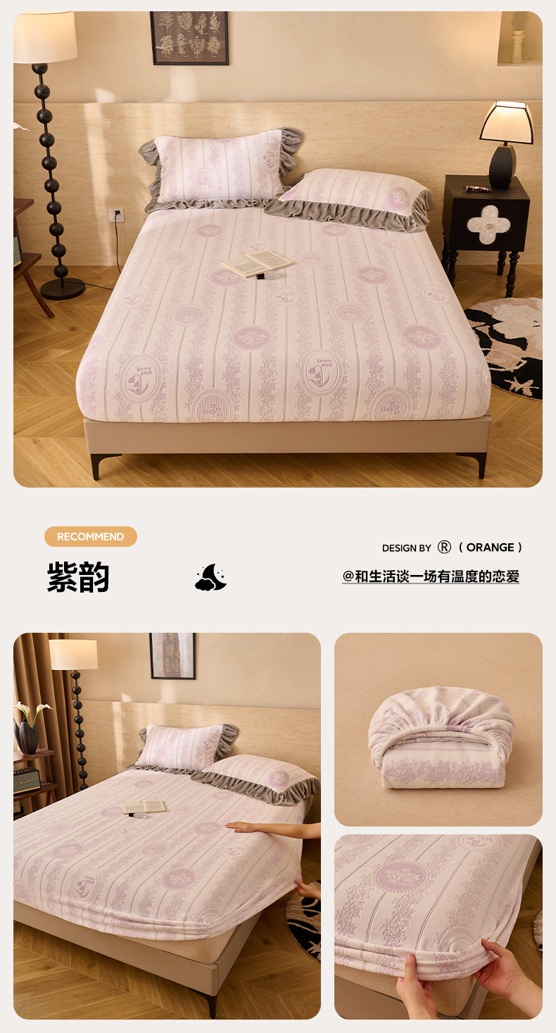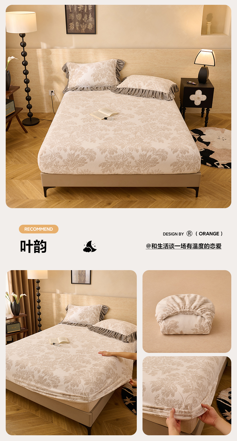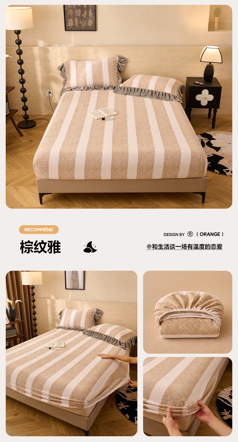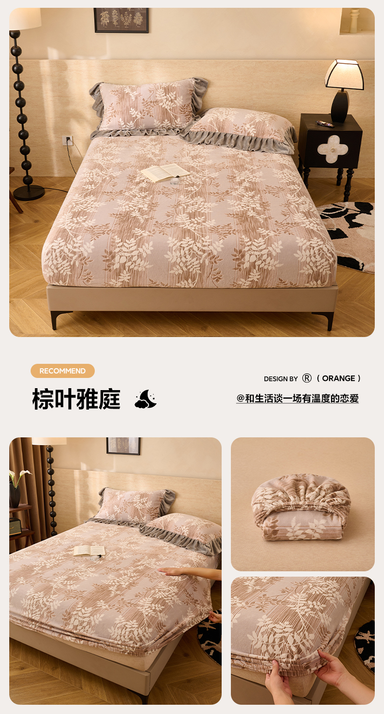 • 91家纺网 家纺一手货源 找家纺 早晨家纺 2025新款高克重牛奶绒烂花单床笠 棕韵格序