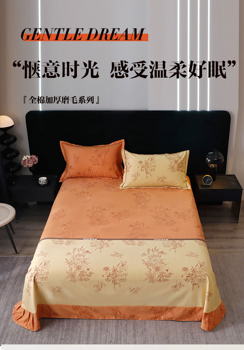 • 91家纺网 家纺一手货源 找家纺 晶缦家纺 2025叶语系·纯棉活性全棉磨毛单床单单品床单床单单件 炫彩