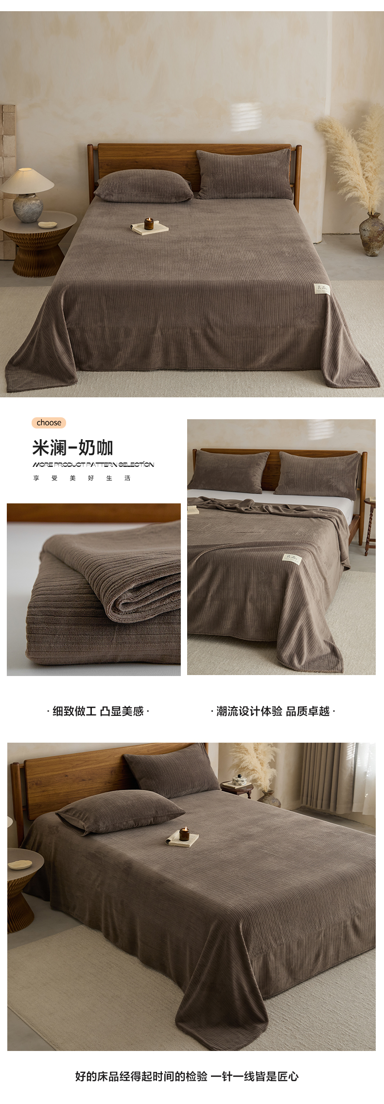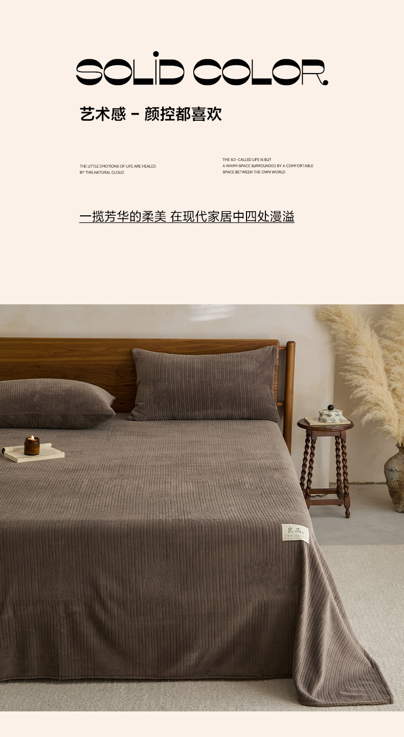 • 91家纺网 家纺一手货源 找家纺 早晨家纺 2025新款红金龙纯色烂花牛奶绒床单 恬憩-豆沙
