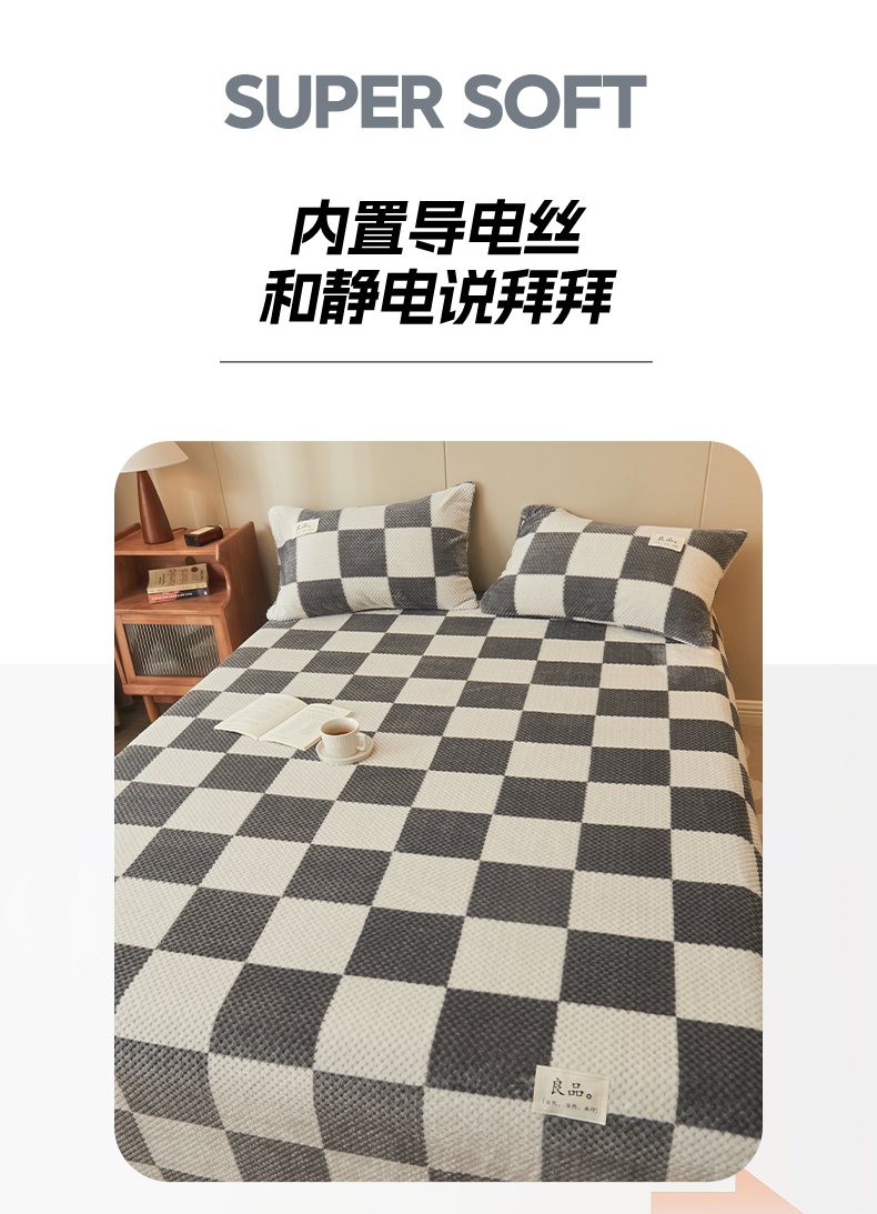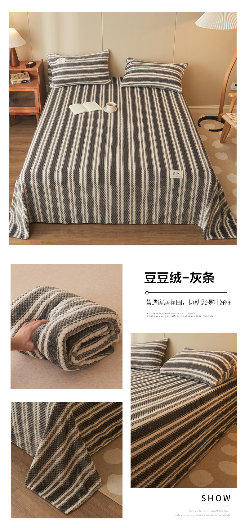 商品名称:早晨家纺 2025新款豆豆款高克重牛奶绒菠萝格无印风床单 豆豆绒-大格橙