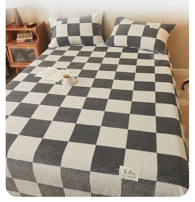 早晨家纺 2025新款豆豆款高克重牛奶绒菠萝格无印风床单 豆豆绒-大格橙