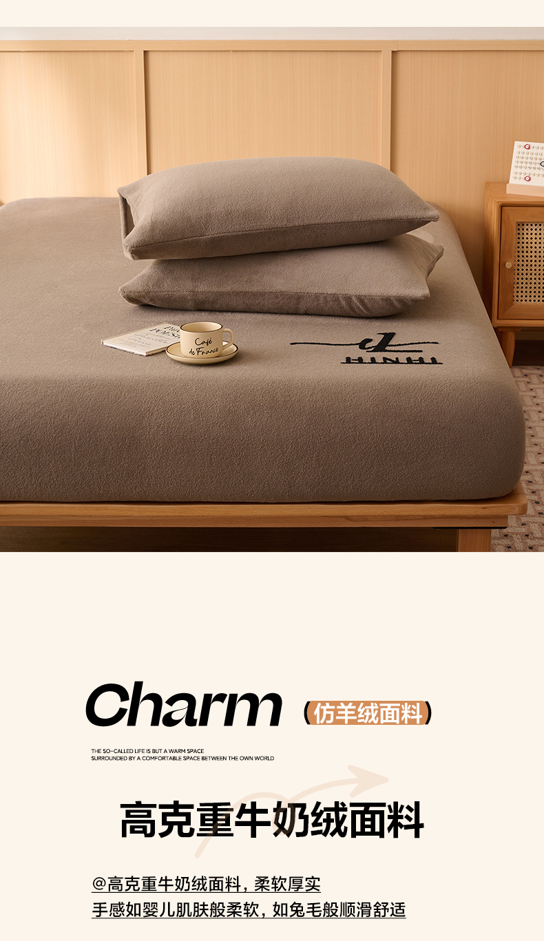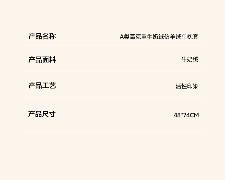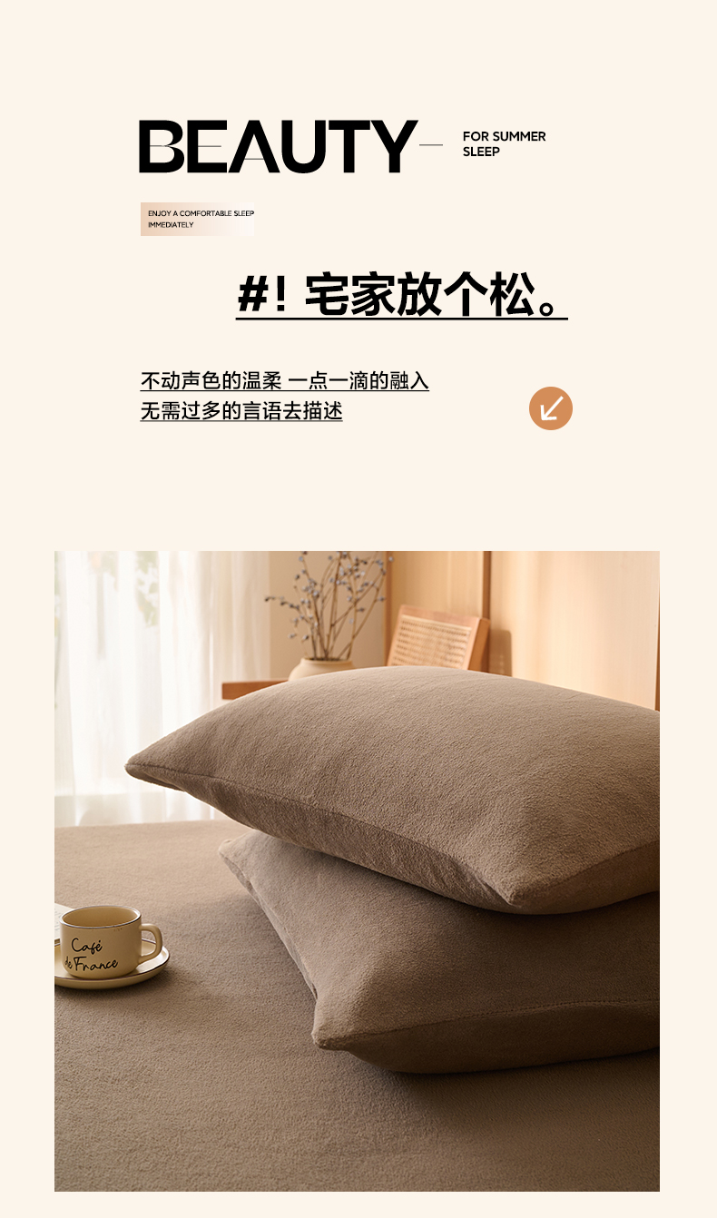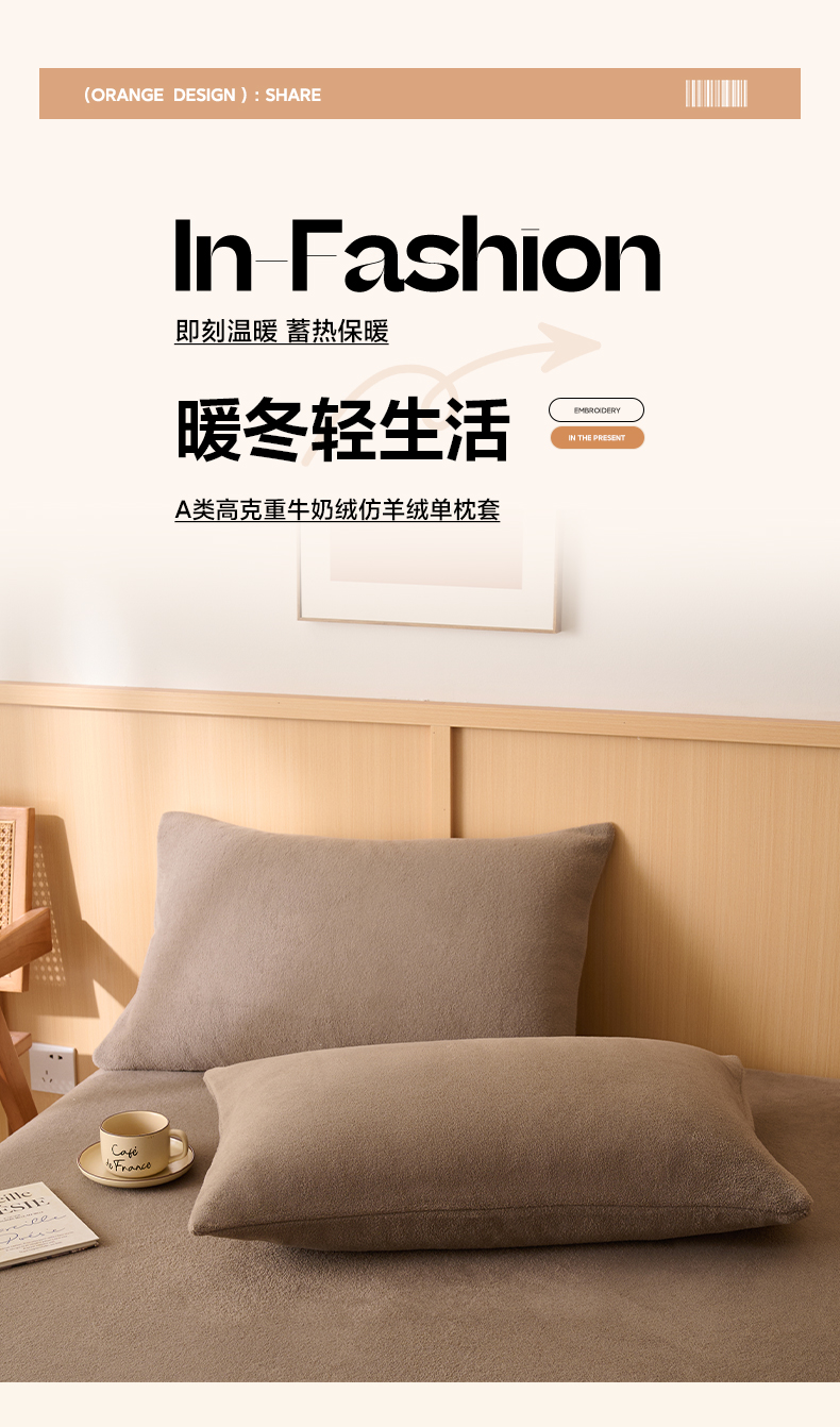 商品名称:早晨家纺 2025新款华泰款高克重牛奶绒仿羊绒单枕套 华泰-奶茶咖