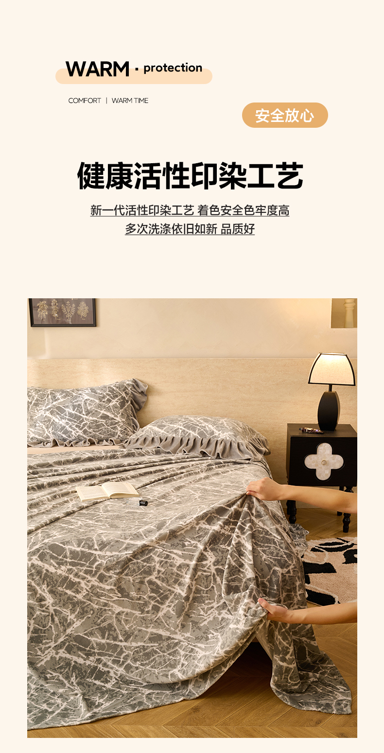 • 91家纺网 家纺一手货源 找家纺 早晨家纺 2025新款高克重牛奶绒烂花单品床单 紫絮