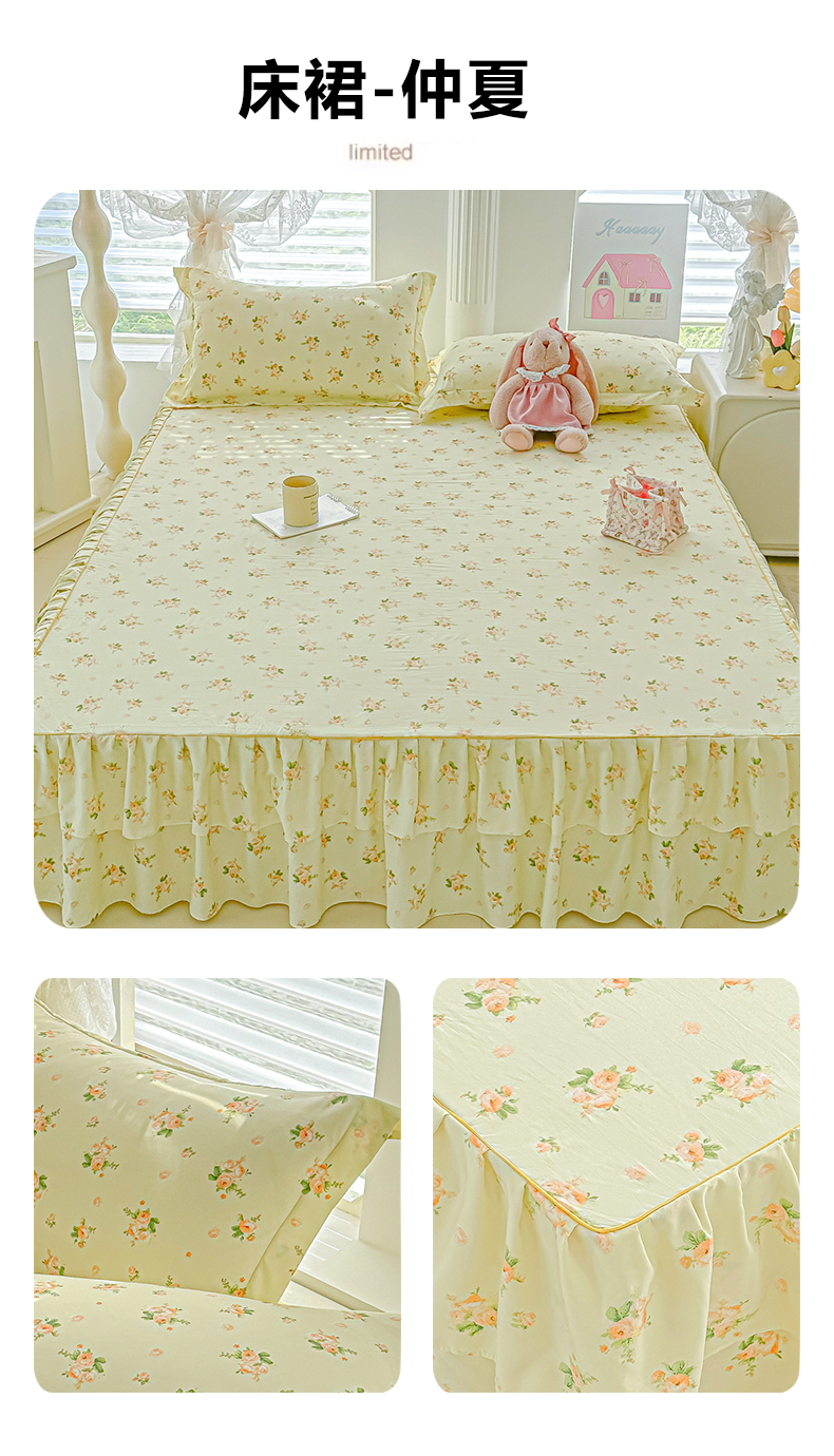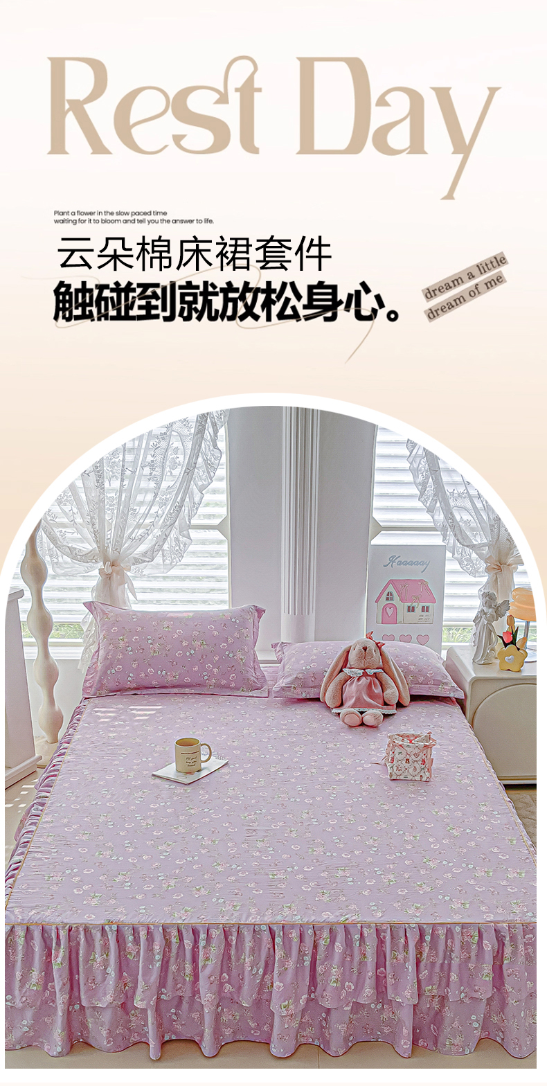 商品名称:子钦家纺 2025新款云朵棉水洗棉韩版双层花边公主风床裙床裙三件套 床裙-普罗爱思