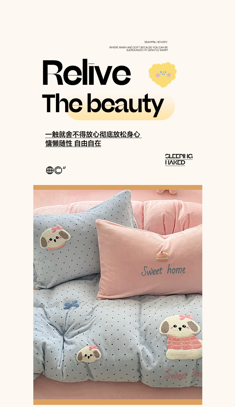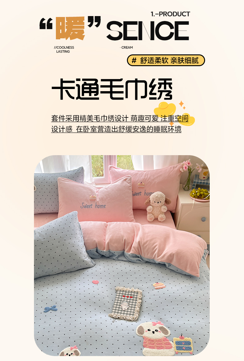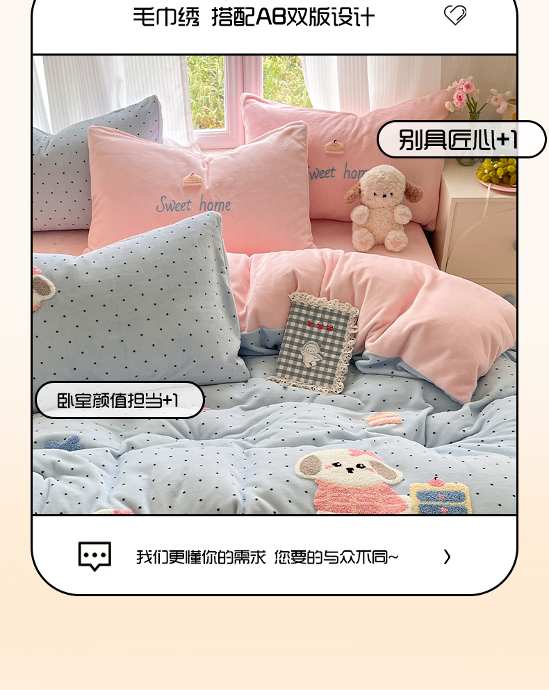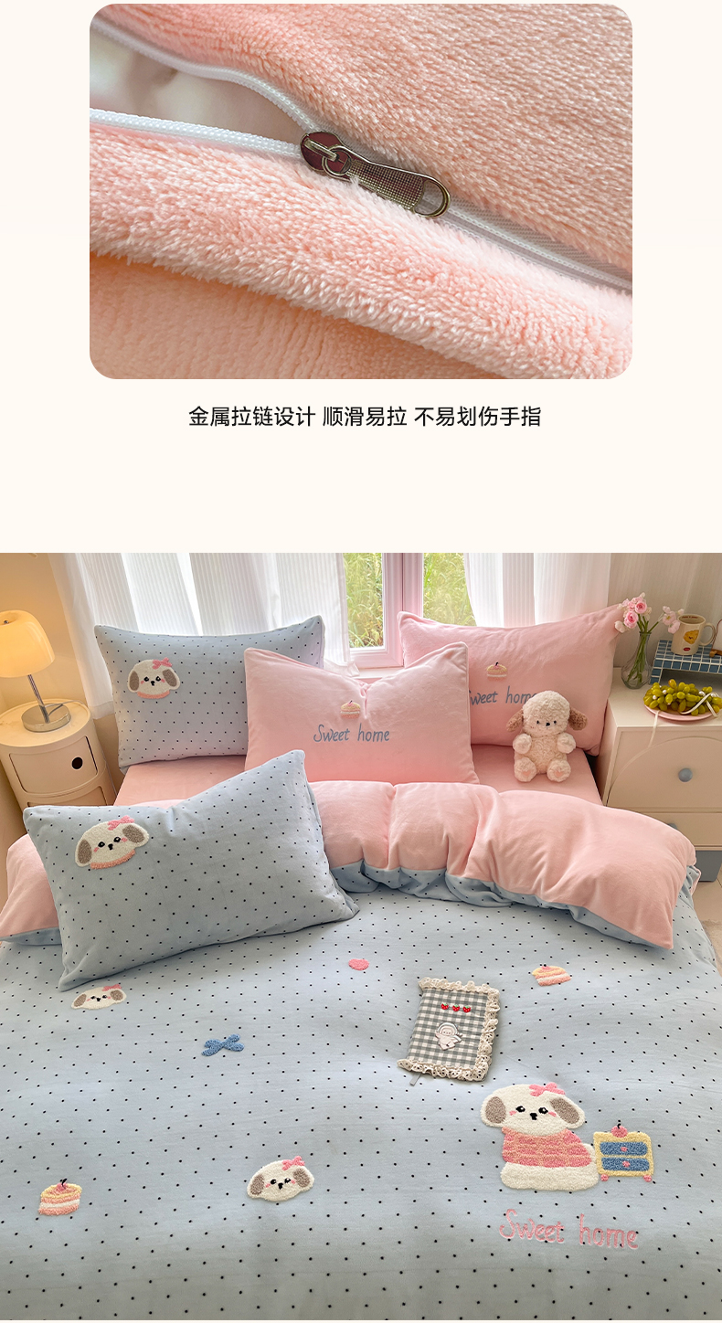 如一 2025新款卡通毛巾绣系列牛奶绒四件套第三批 蛋糕小狗