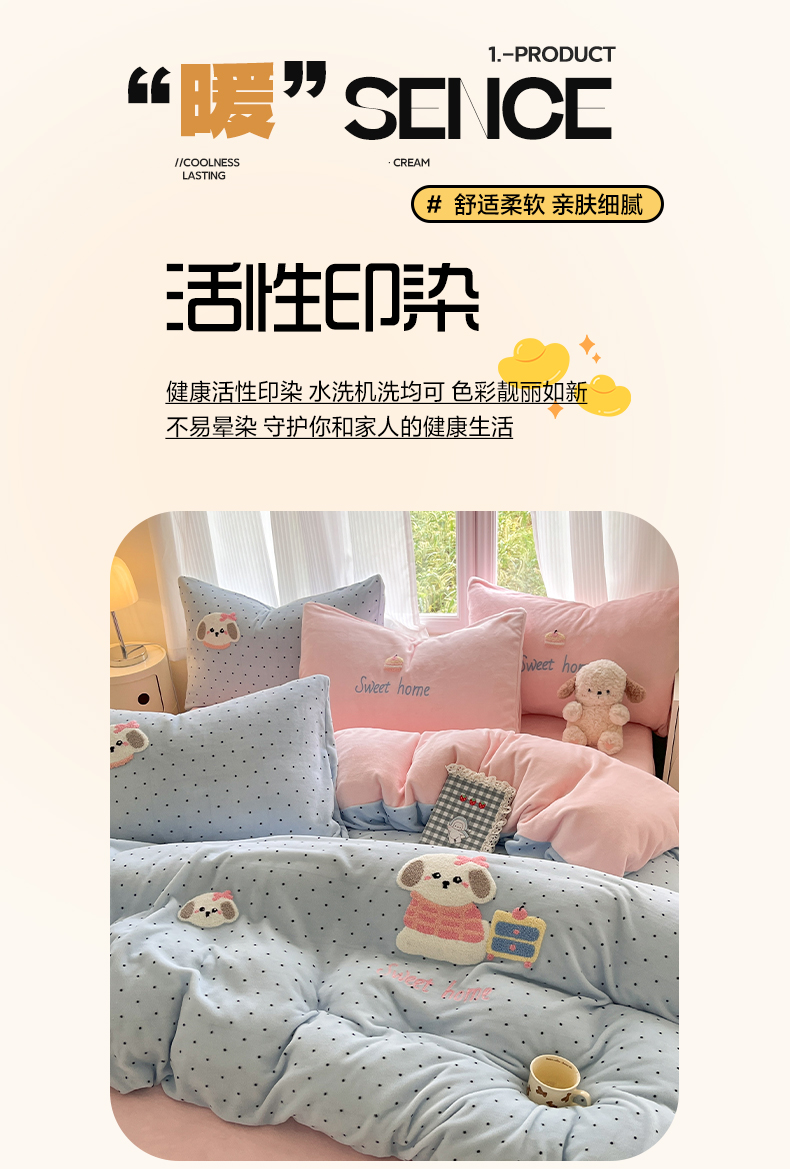 (总)如一 2025新款高克重大版数码印花牛奶绒四件套,毛毛狗,猫咪酱,俏皮狗,色彩猫,小熊仔,熊猫咖,游乐园,粉伙伴,拉兔咖,萌宠黄,萌宠绿,萌派对,围巾狗,线条狗,小粉喵,小花喵,小伙伴