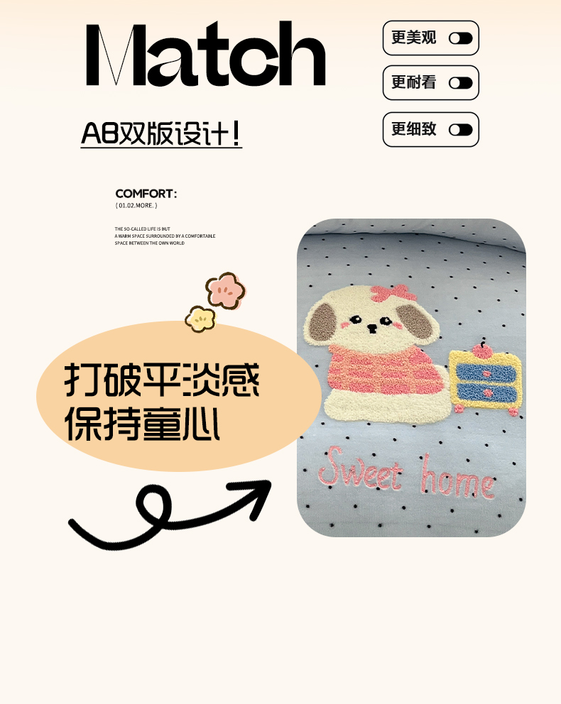 (总)如一 2025新款高克重卡通贴布绣牛奶绒四件套,爱心猫,狮毛狗,雪纳瑞,线团狗,豹纹兔,蓝格猫,粉格猫,咖啡狗,雨伞猫