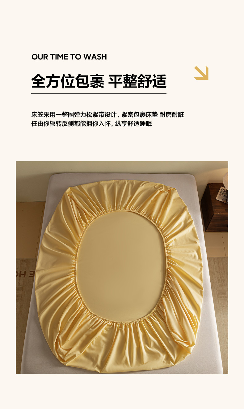 商品名称:秀色家纺 2025高端长绒棉贡缎加厚磨毛纯棉单件床笠三件套床罩全棉床垫保护套50s 冬禧-麦秆黄