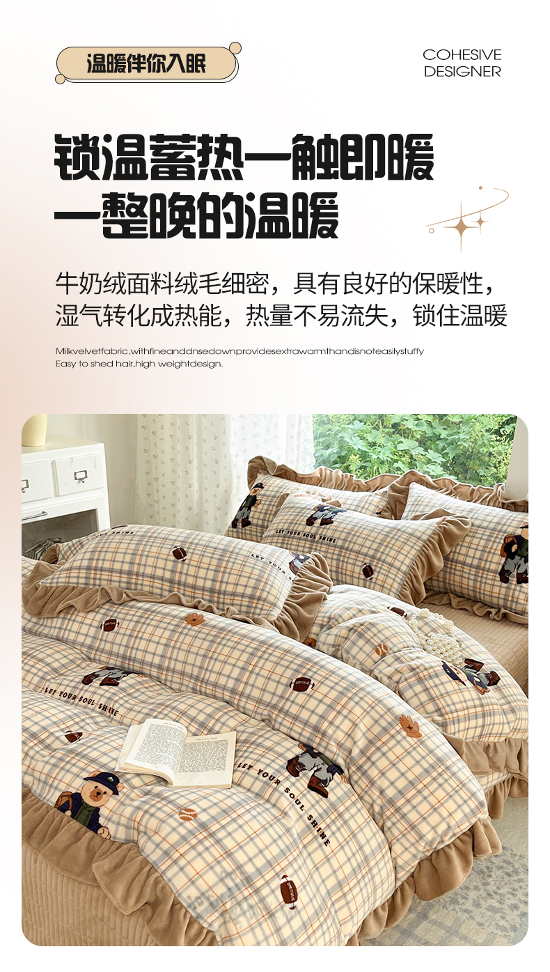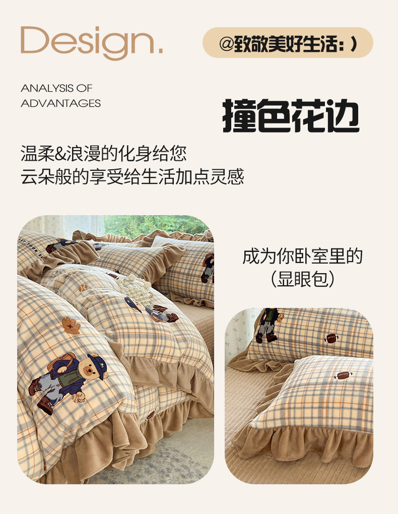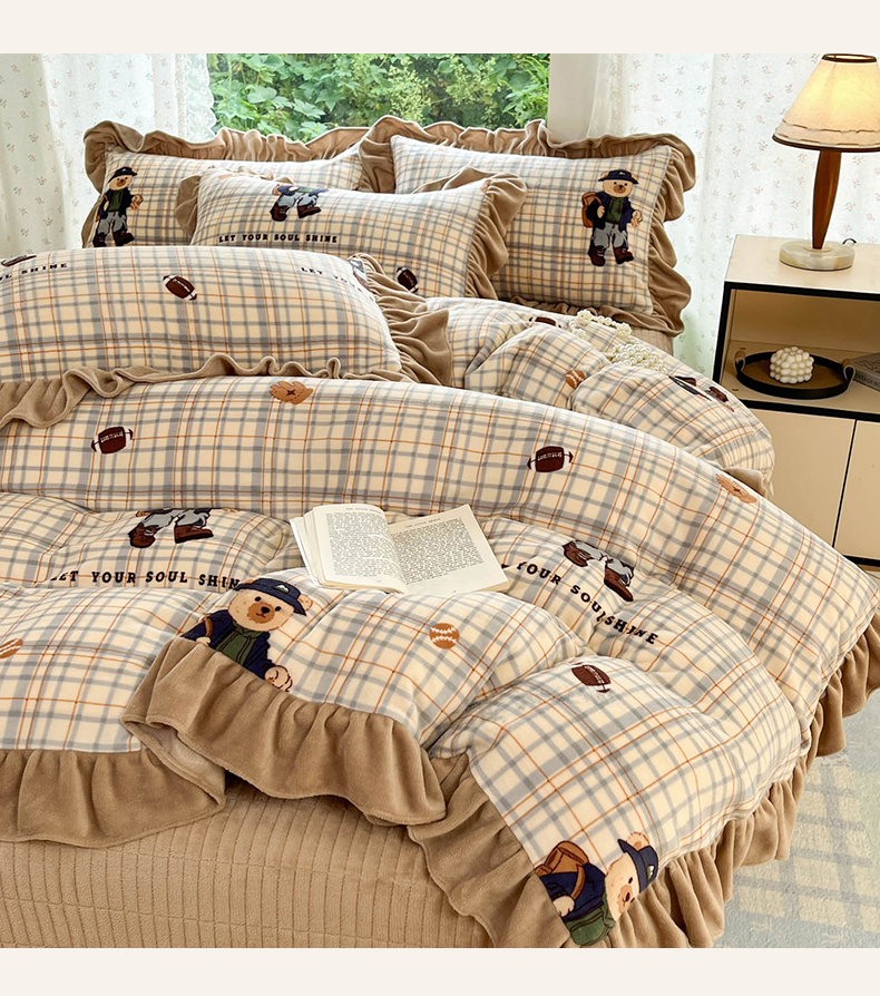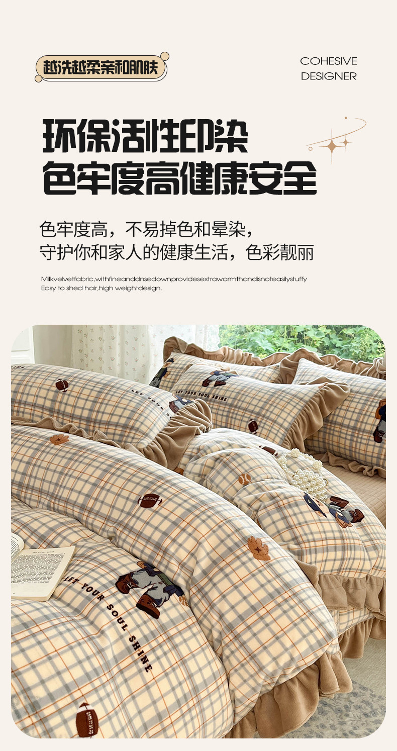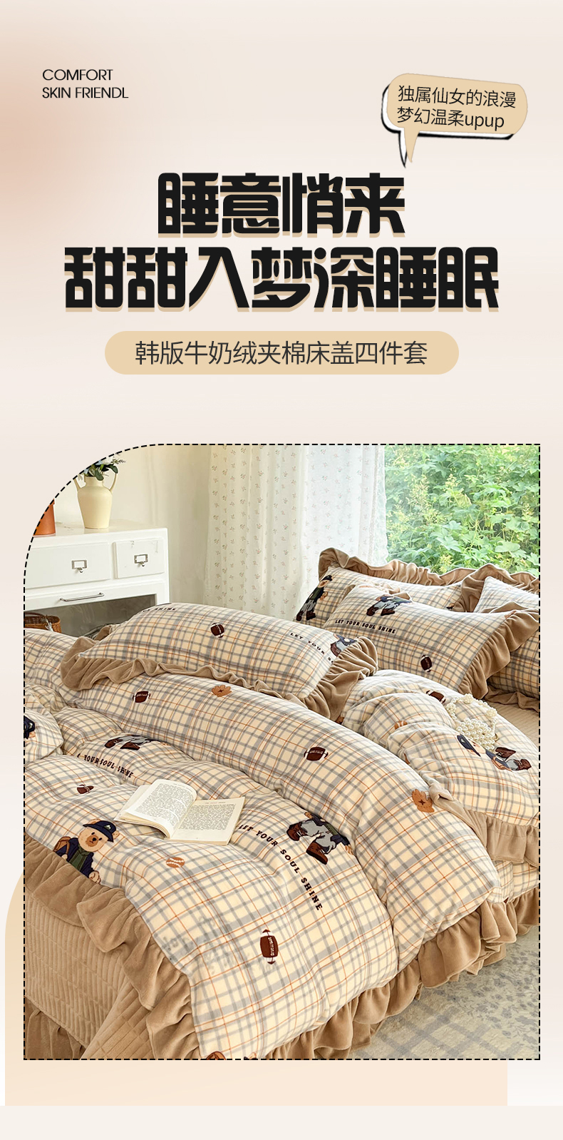 当前位置: 91家纺网 > 商品网购 > 床品套件 > 四件套 > 牛奶绒四件套 > 牵依 2025新款韩版牛奶绒夹棉床盖四件套 格子小熊