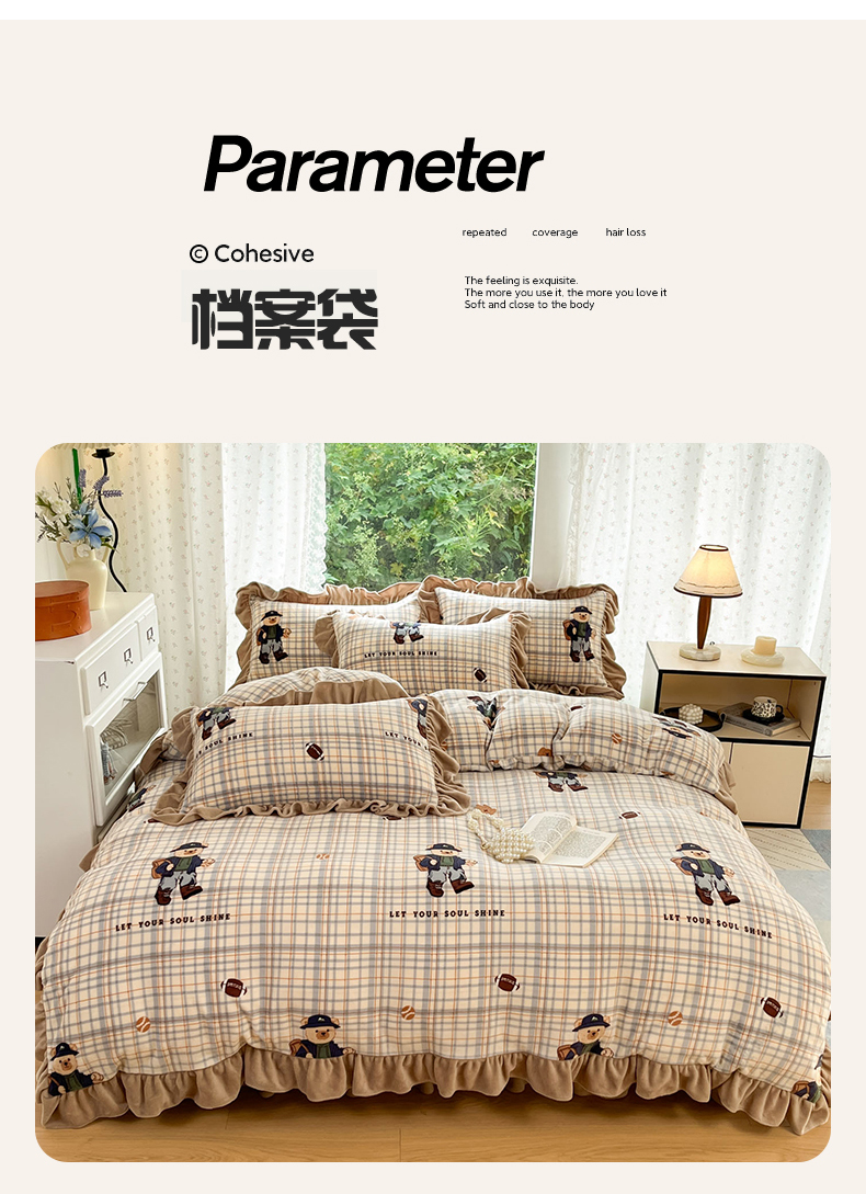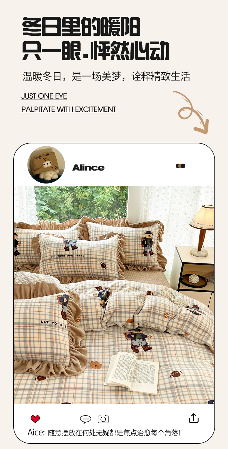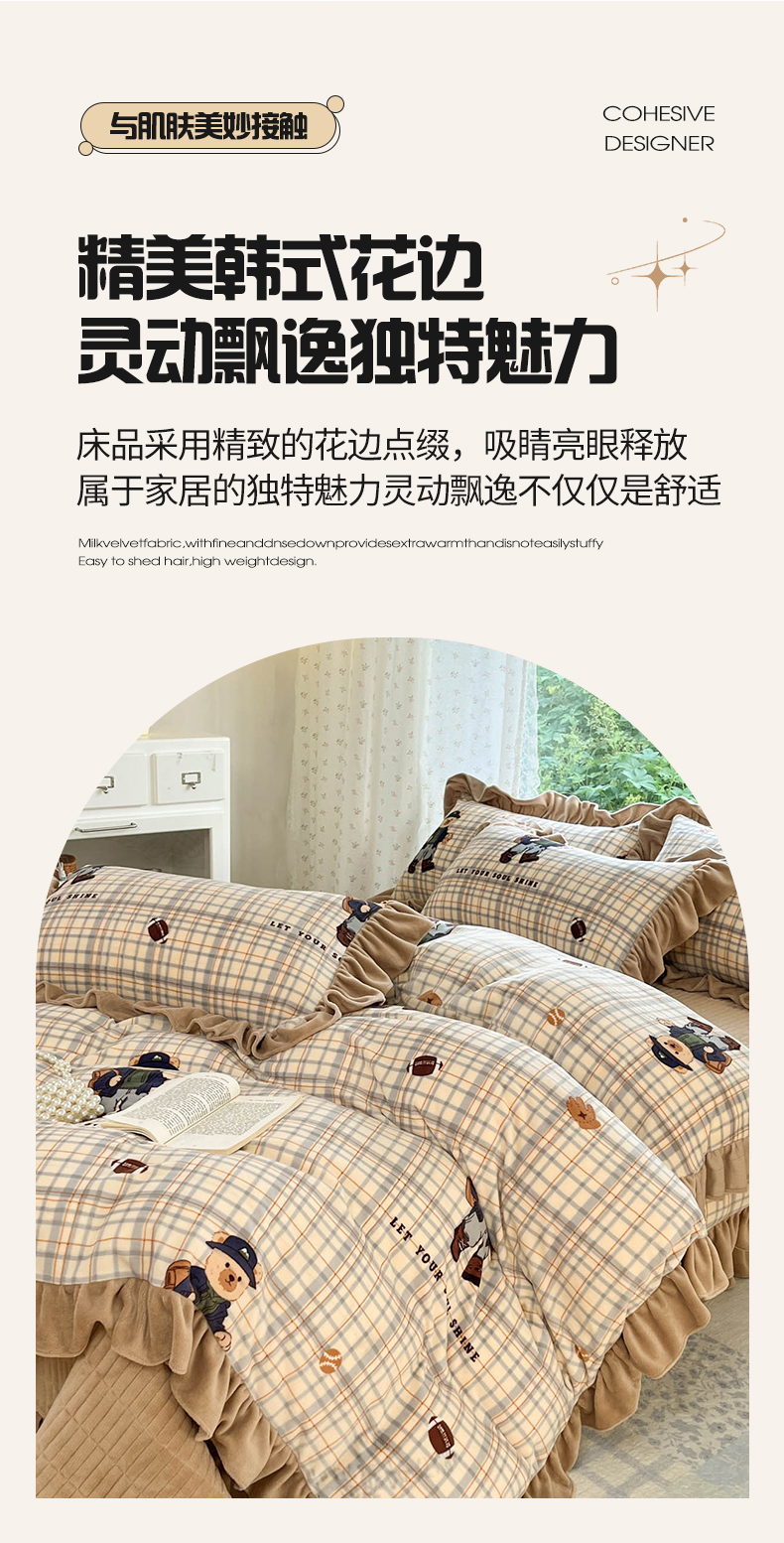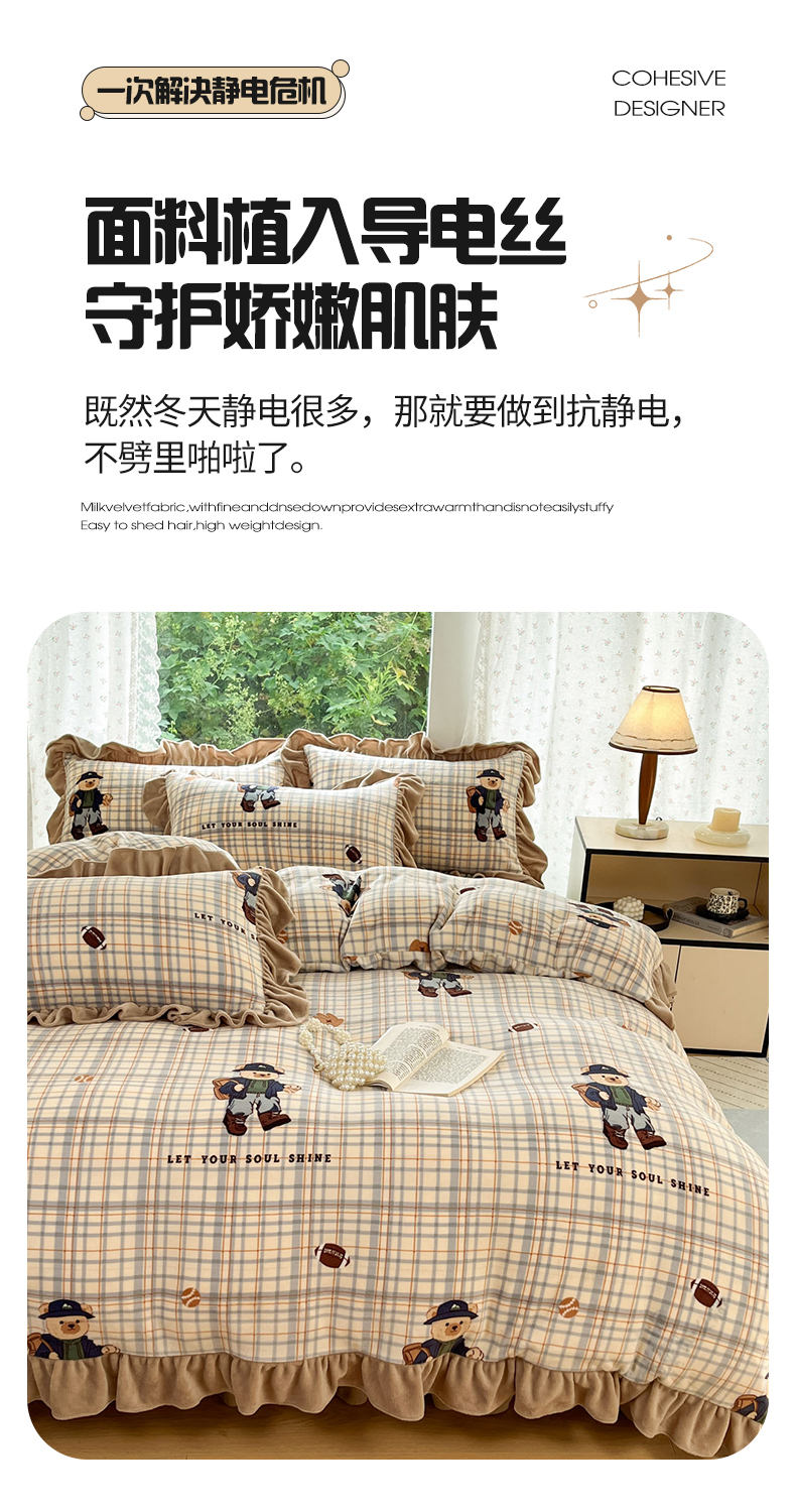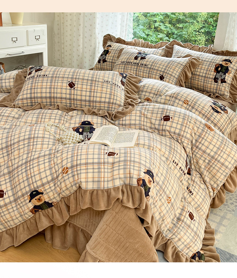 当前位置: 91家纺网 > 商品网购 > 床品套件 > 四件套 > 牛奶绒四件套 > 牵依 2025新款韩版牛奶绒夹棉床盖四件套 格子小熊