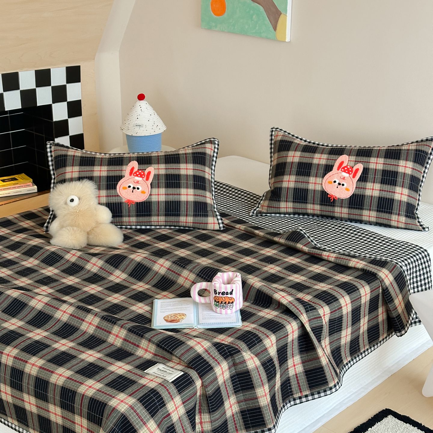 (总)觅糖家纺 2025新款色织水洗提花小波点贴布系列四件套,sweet兔,滑板小狮子,可爱松鼠,奶油比熊,小熊的故事,小羊驼