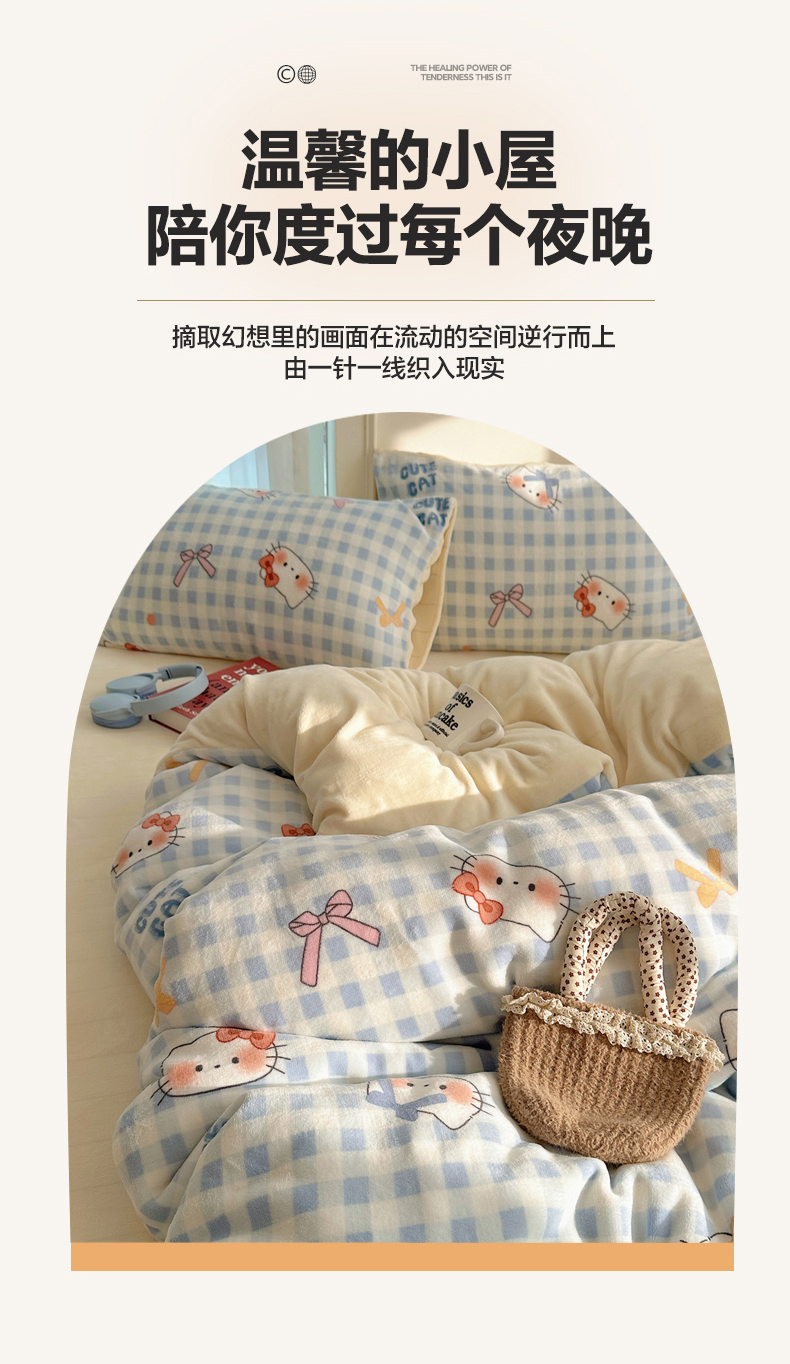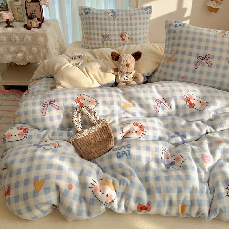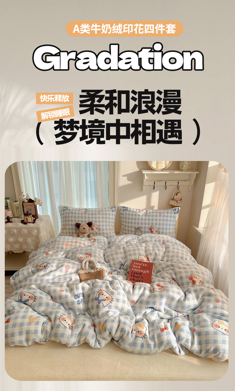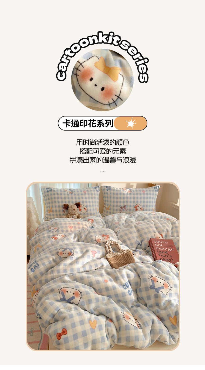 当前位置: 91家纺网 > 商品网购 > 床品套件 > 四件套 > 牛奶绒四件套 > 耀达家居 爆款2025新款ins小清新少女奶油卡通可爱加厚200克牛奶绒四件套 蓝格凯蒂
