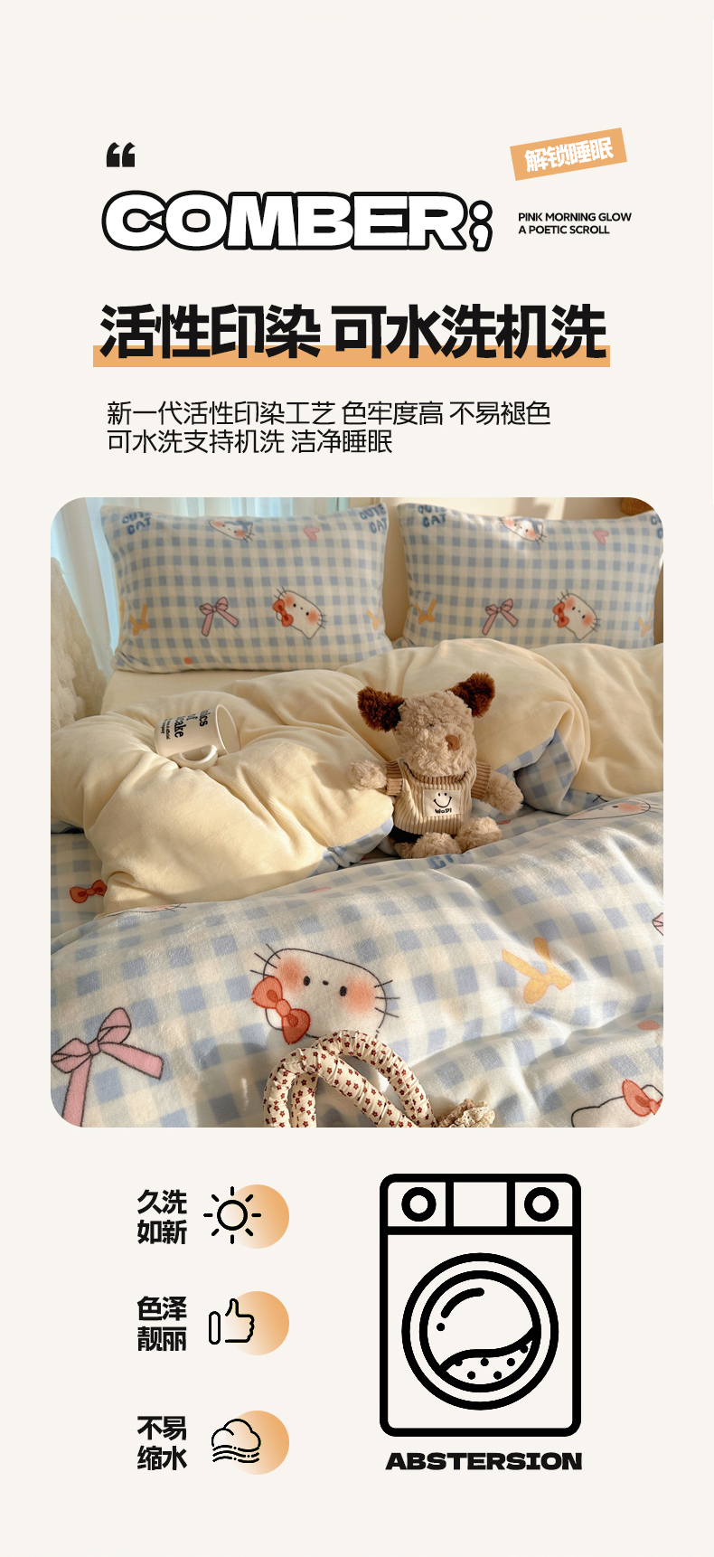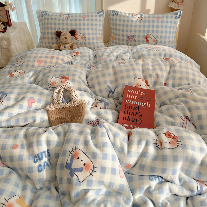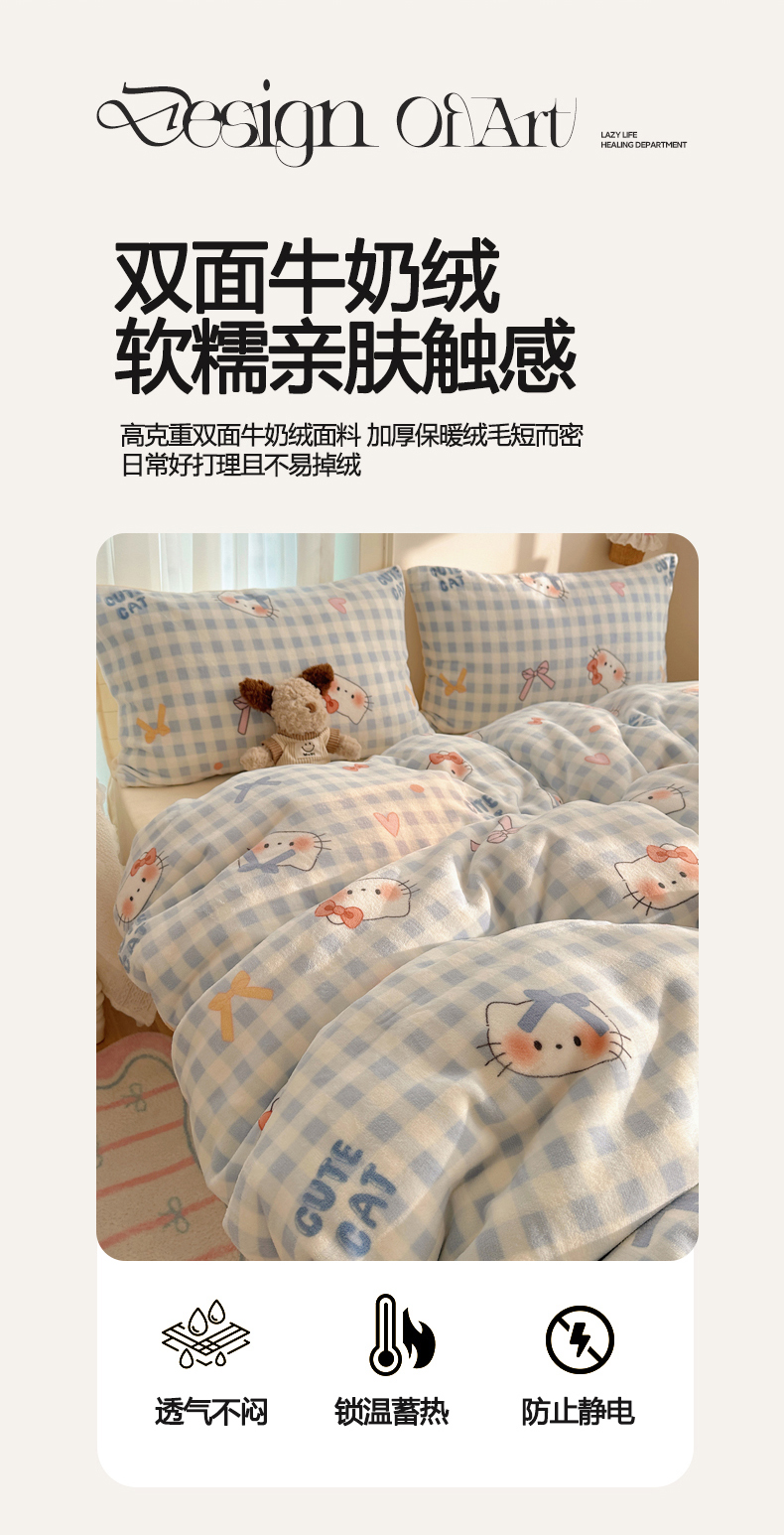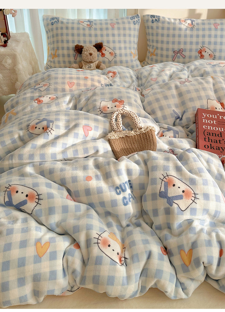当前位置: 91家纺网 > 商品网购 > 床品套件 > 四件套 > 牛奶绒四件套 > 耀达家居 爆款2025新款ins小清新少女奶油卡通可爱加厚200克牛奶绒四件套 蓝格凯蒂