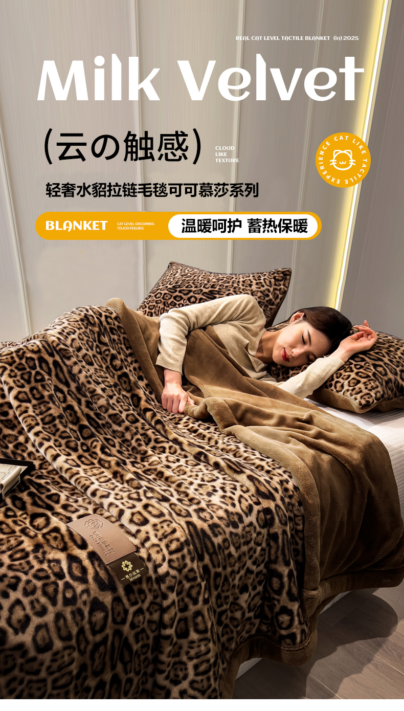 慕木家纺 2025新款轻奢水貂拉链毛毯可可慕莎系列 可可慕莎-魅影棕咖
