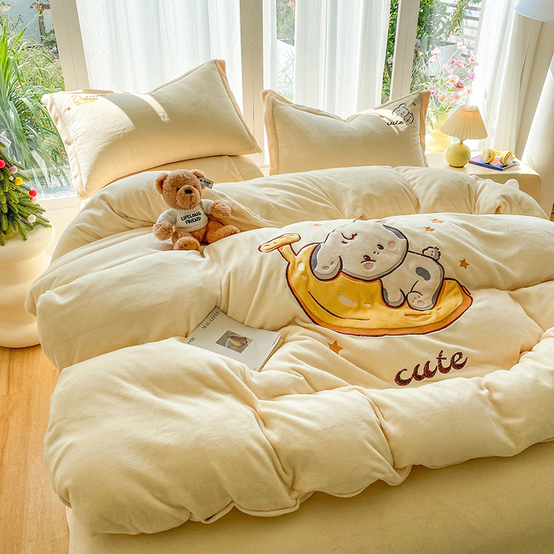 当前位置: 91家纺网 > 商品网购 > 床品套件 > 四件套 > 牛奶绒四件套 > 棉生活家纺 2025新款卡通牛奶绒贴布绣系列四件套 小松鼠 奶黄