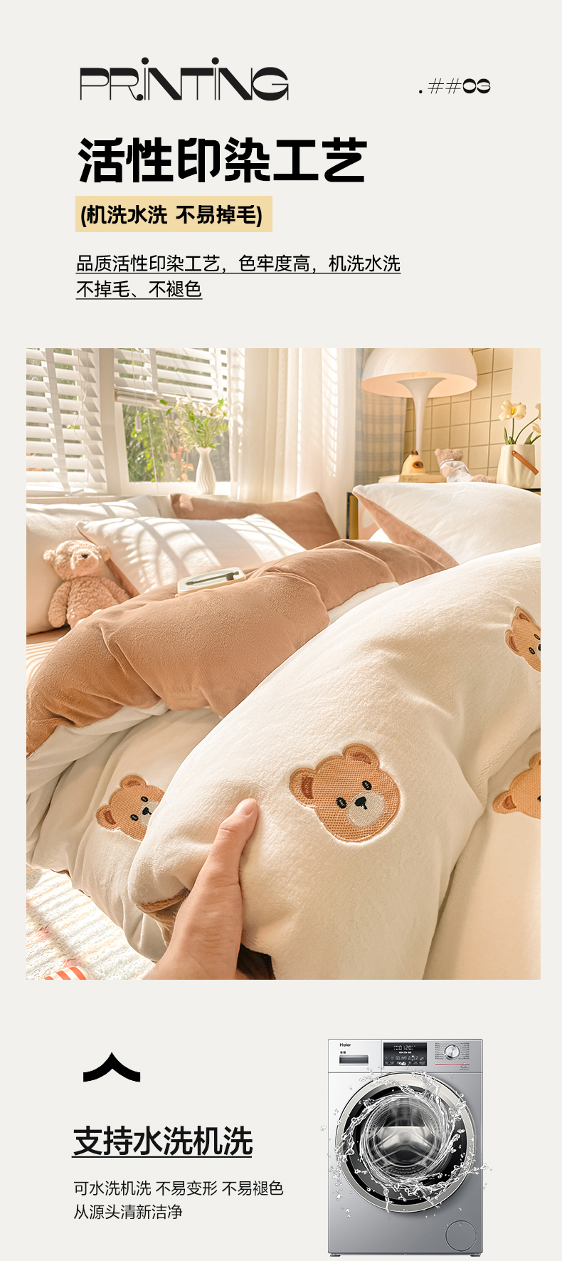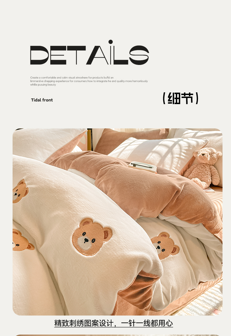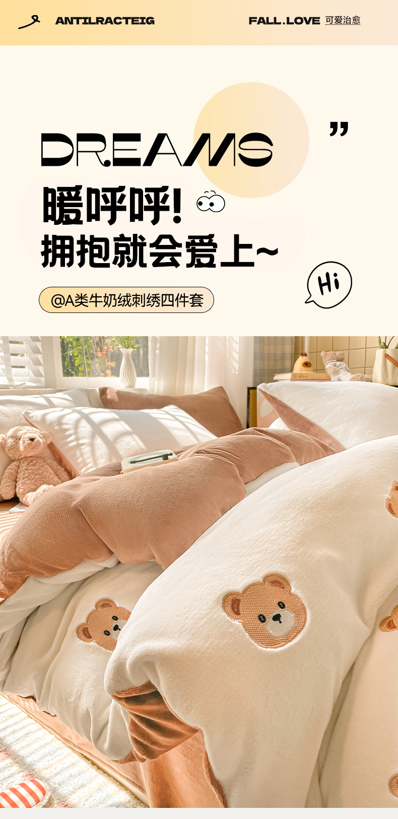 商品名称:仔仔熊 2025新款牛奶绒刺绣被套单被套被套单件 甜梦小熊-咖