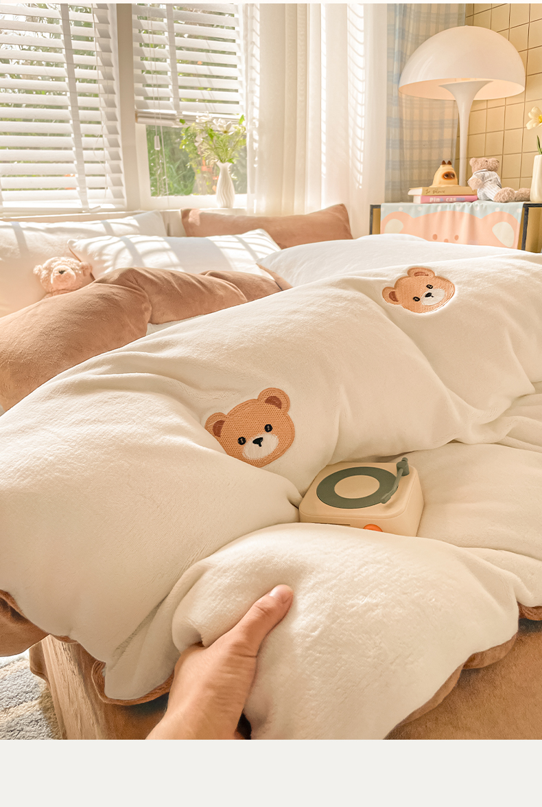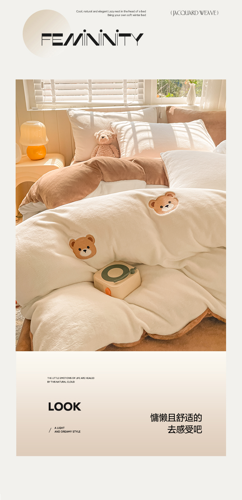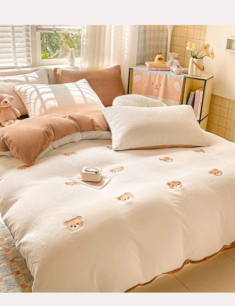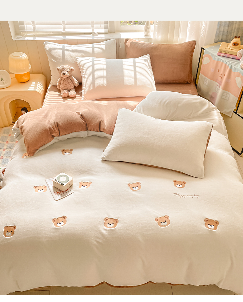 商品名称:仔仔熊 2025新款牛奶绒刺绣被套单被套被套单件 甜梦小熊-咖