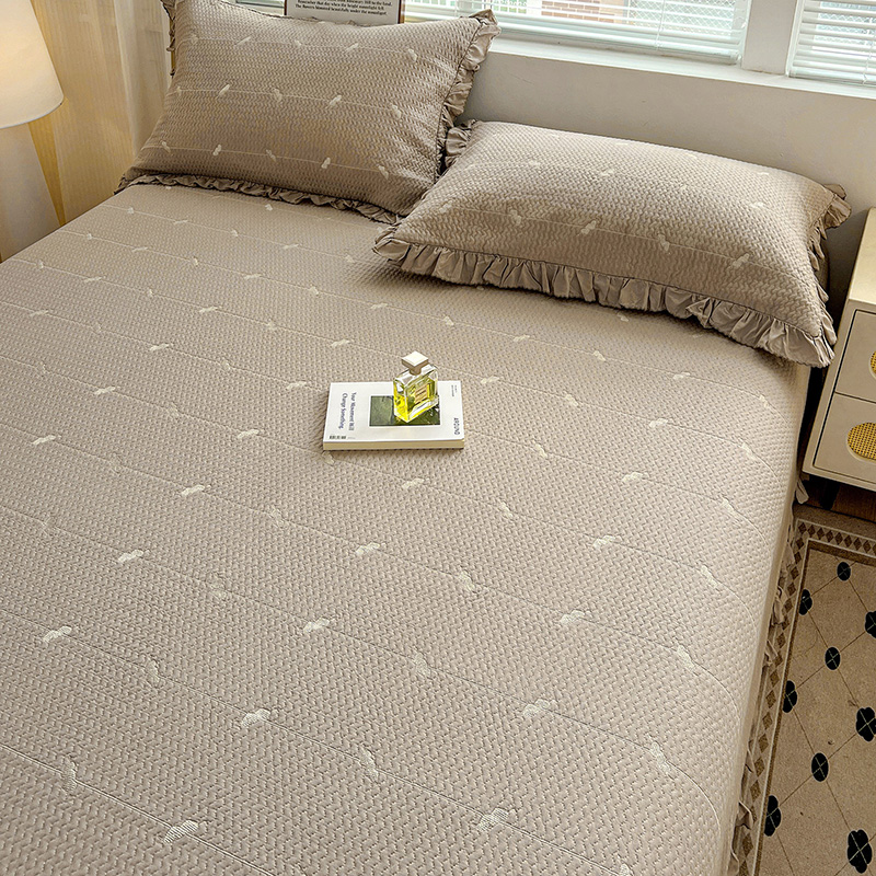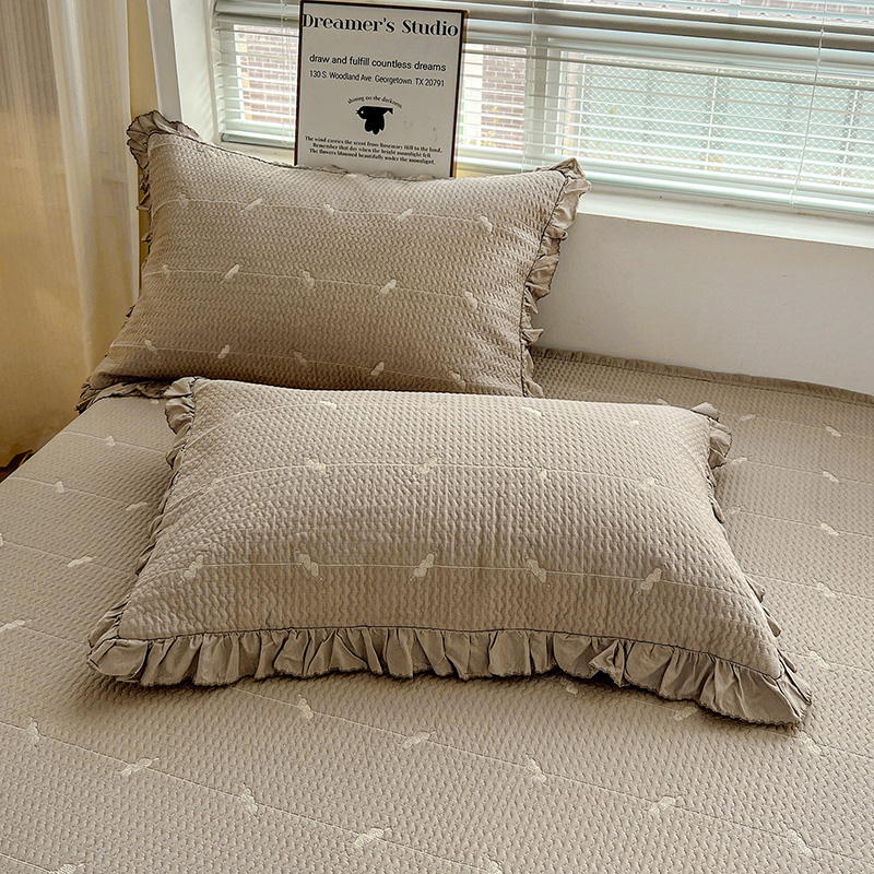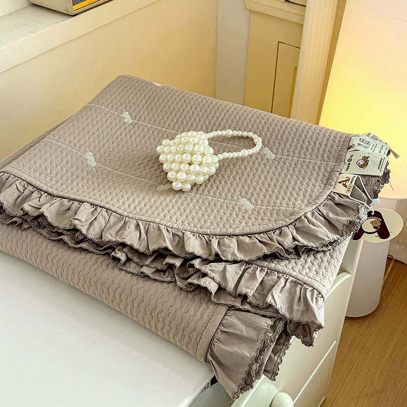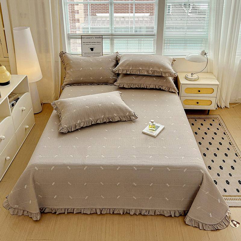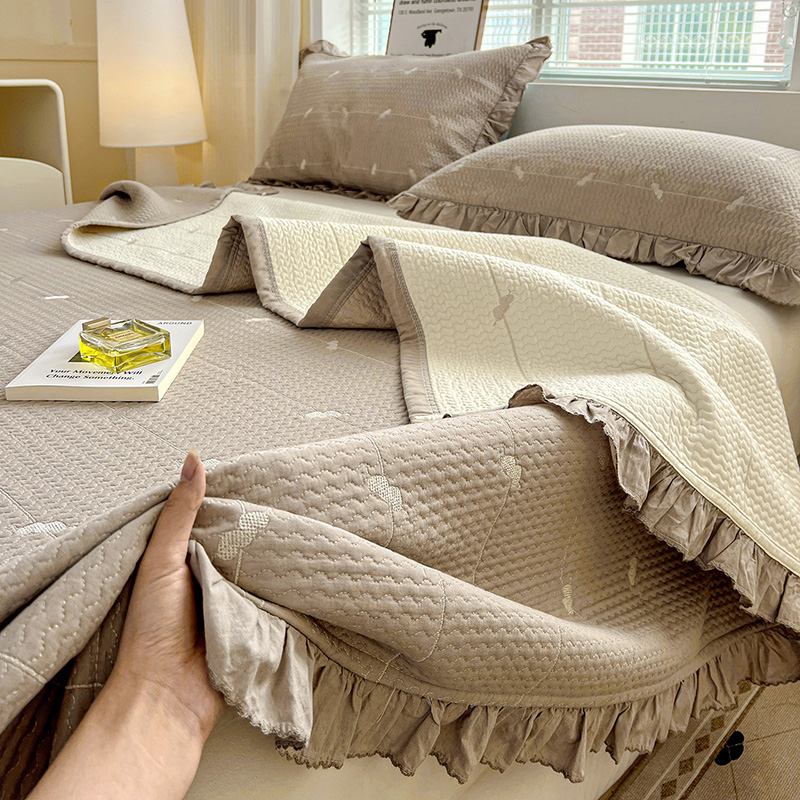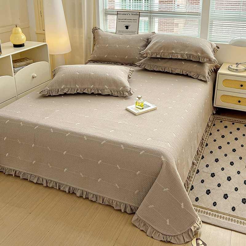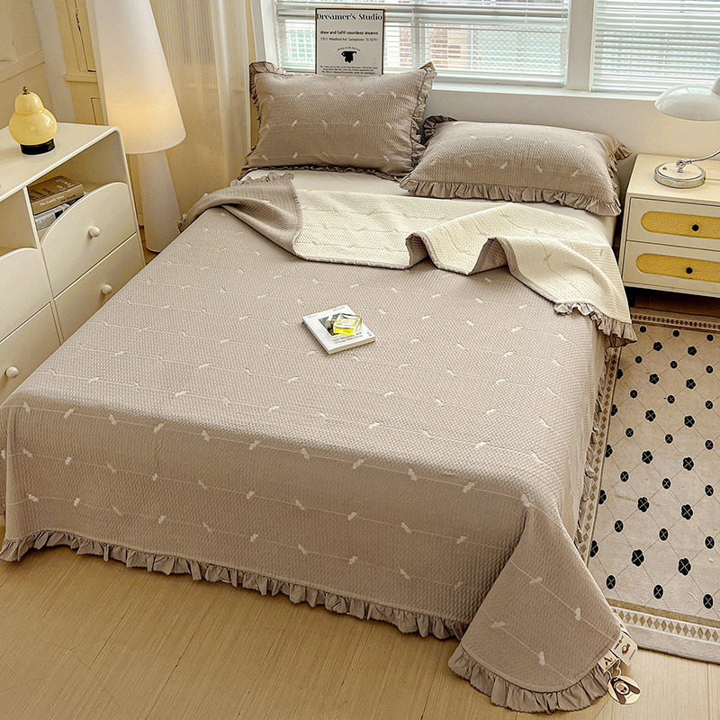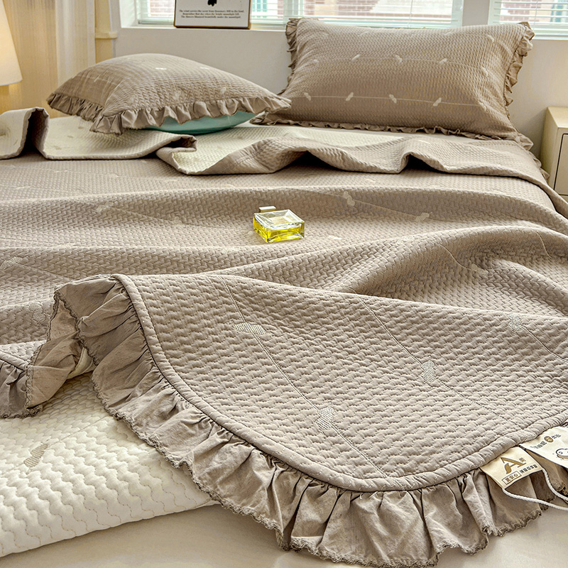 (总)源舜家纺 2025新款色织棉简约韩系花边床盖三件套,简约灰,简约粉,简约绿,简约驼,简约蓝