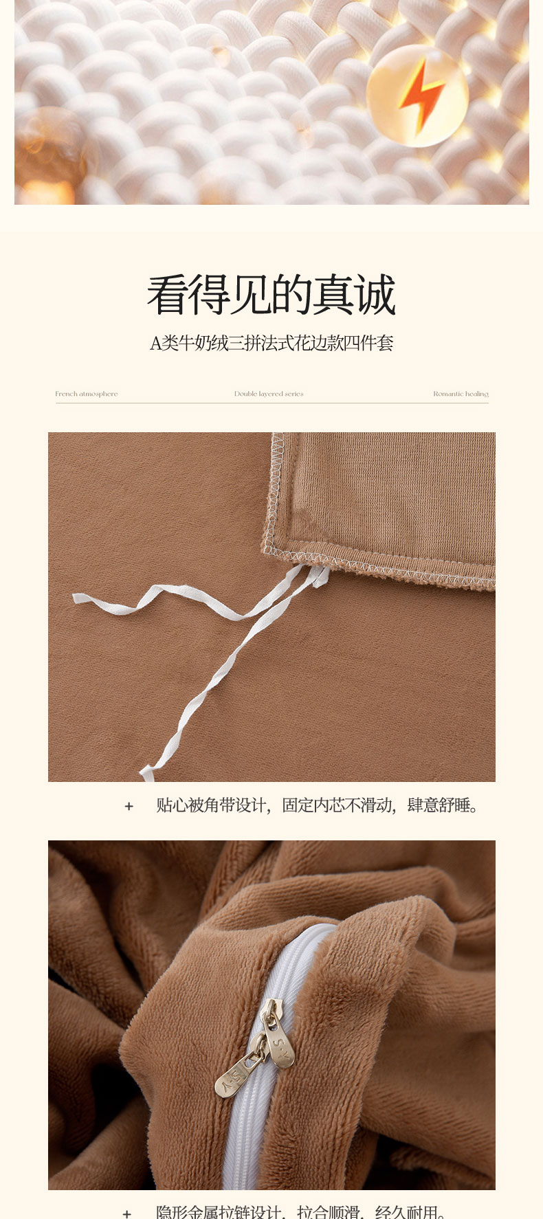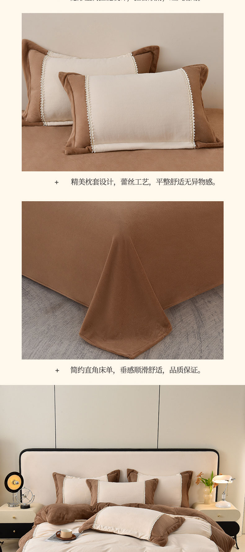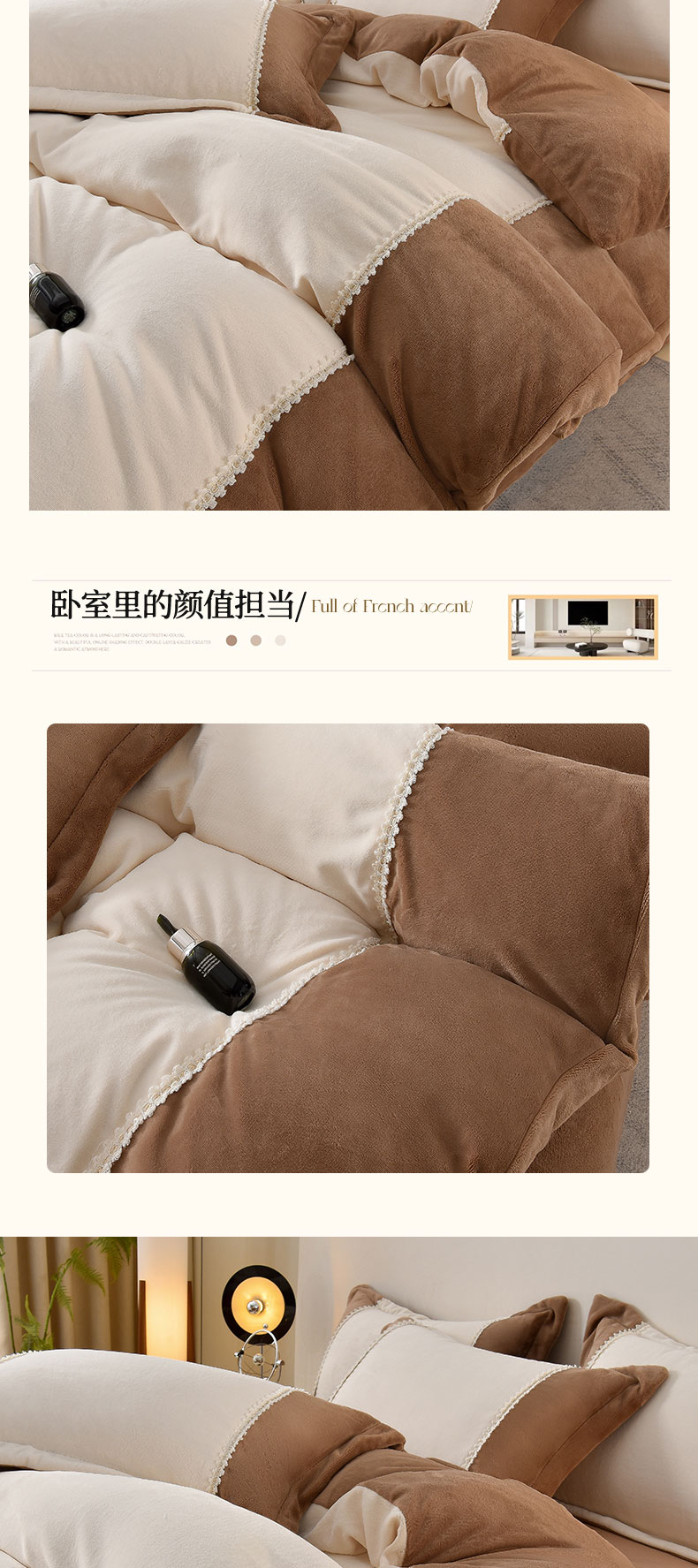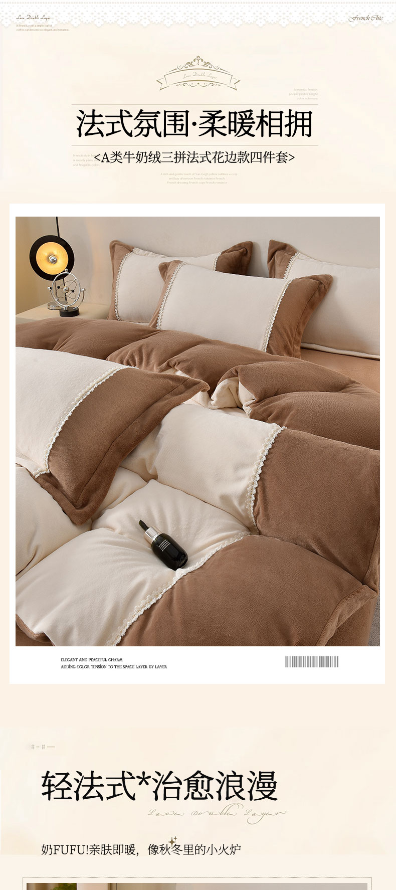 当前位置: 91家纺网 > 商品网购 > 床品套件 > 四件套 > 牛奶绒四件套 > 眷恋家纺 2025新款A类牛奶绒三拼法式花边款四件套-蒂凡妮 蒂凡妮-奶白摩卡