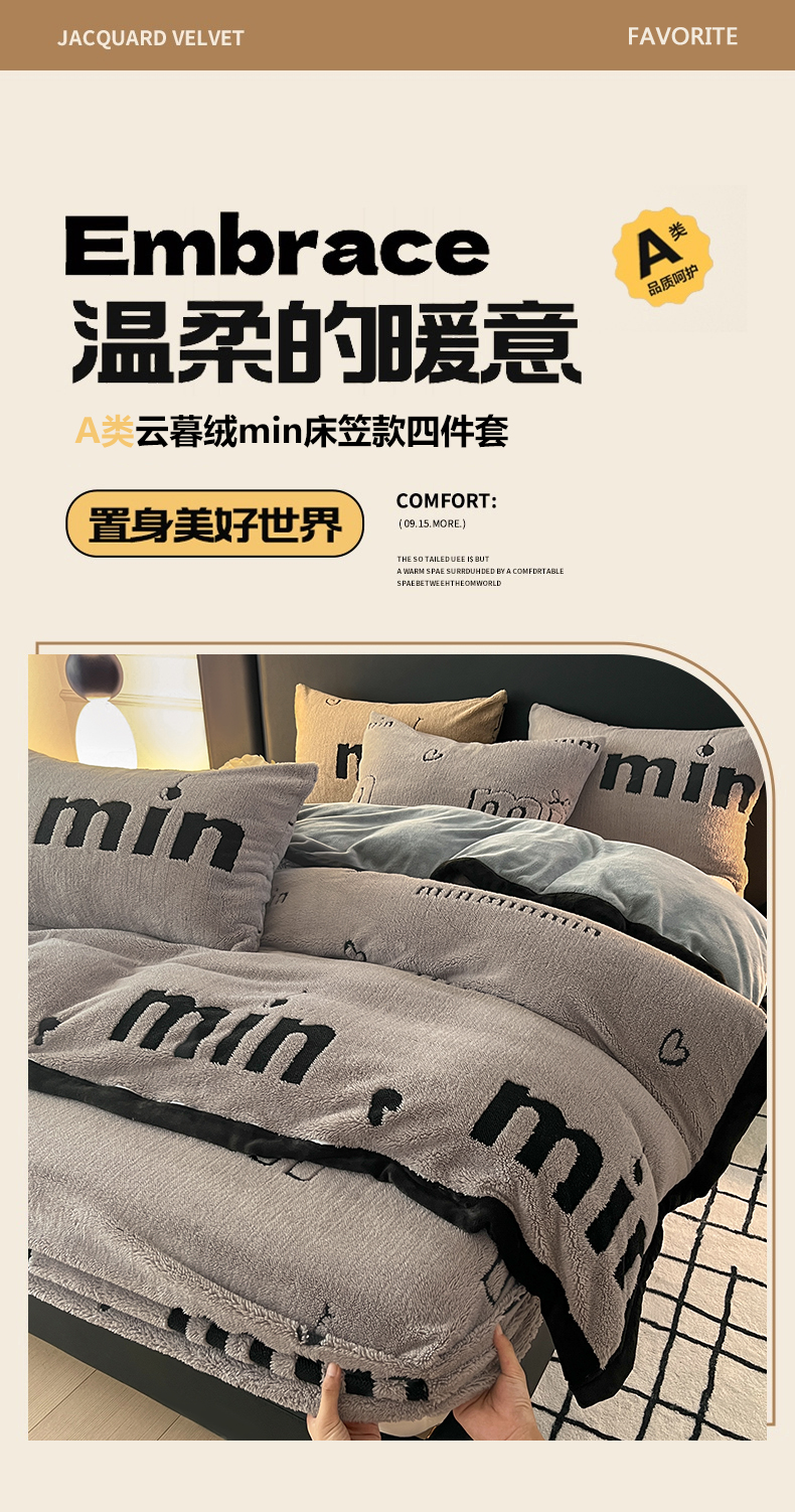 当前位置: 91家纺网 > 商品网购 > 床品套件 > 四件套 > 其它四件套 > 叠派家纺 2025新款A类高克重云暮绒床笠款四件套(跨境专供首选)提供买家秀 云暮绒min床笠四件套-云絮灰