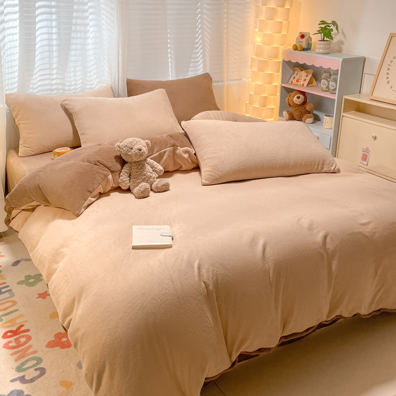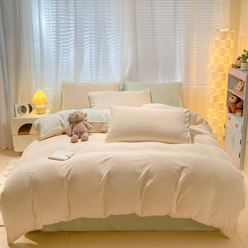 当前位置: 91家纺网 > 商品网购 > 床品套件 > 四件套 > 牛奶绒四件套 > 仔仔熊 2025新款牛奶绒纯色双拼四件套 黄色+绿色