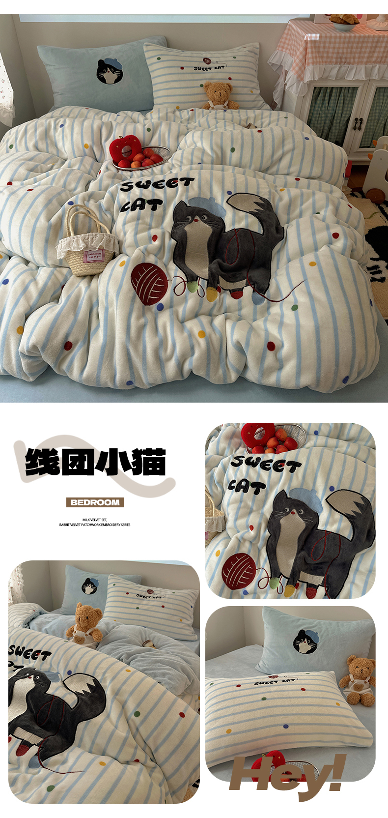 (总)暖生活 2025新款牛奶雕花绒单品枕套被套床笠-三小只系列,三只布布,三只头像,三只甜品,三只甜崽,组合,三只派对,三只秋千