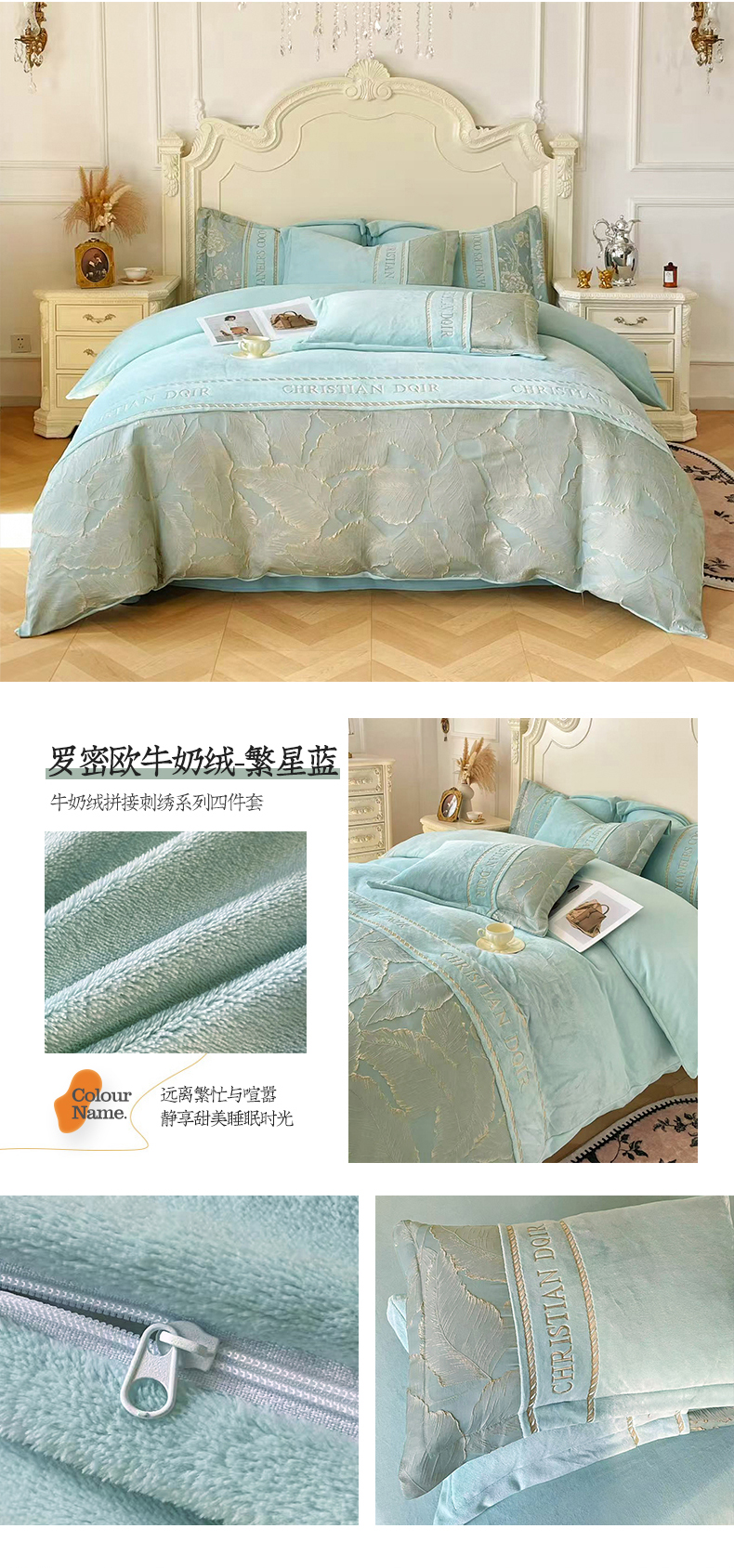 当前位置: 91家纺网 > 商品网购 > 床品套件 > 四件套 > 牛奶绒四件套 > 置顶家纺 2025新款轻奢牛奶绒拼接刺绣四件套-罗密欧 罗密欧牛奶绒-宾利蓝