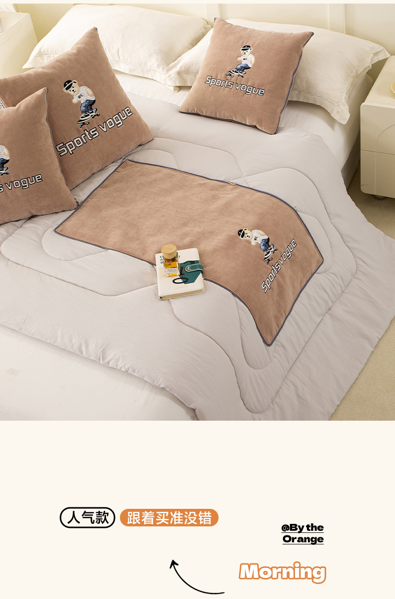 (总)多今家纺 2025新款水洗棉雪尼尔刺绣抱枕被子-滑板熊系列,滑板熊-葵花白,滑板熊-葱绿,滑板熊-淡桃红,滑板熊-后土黄,滑板熊-远天蓝