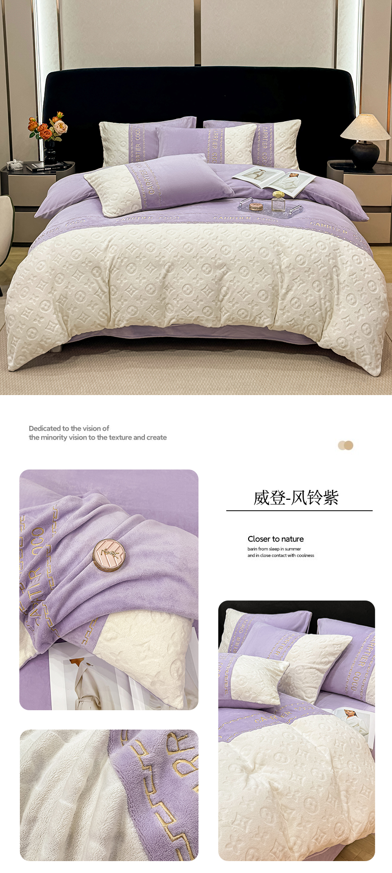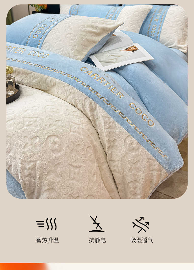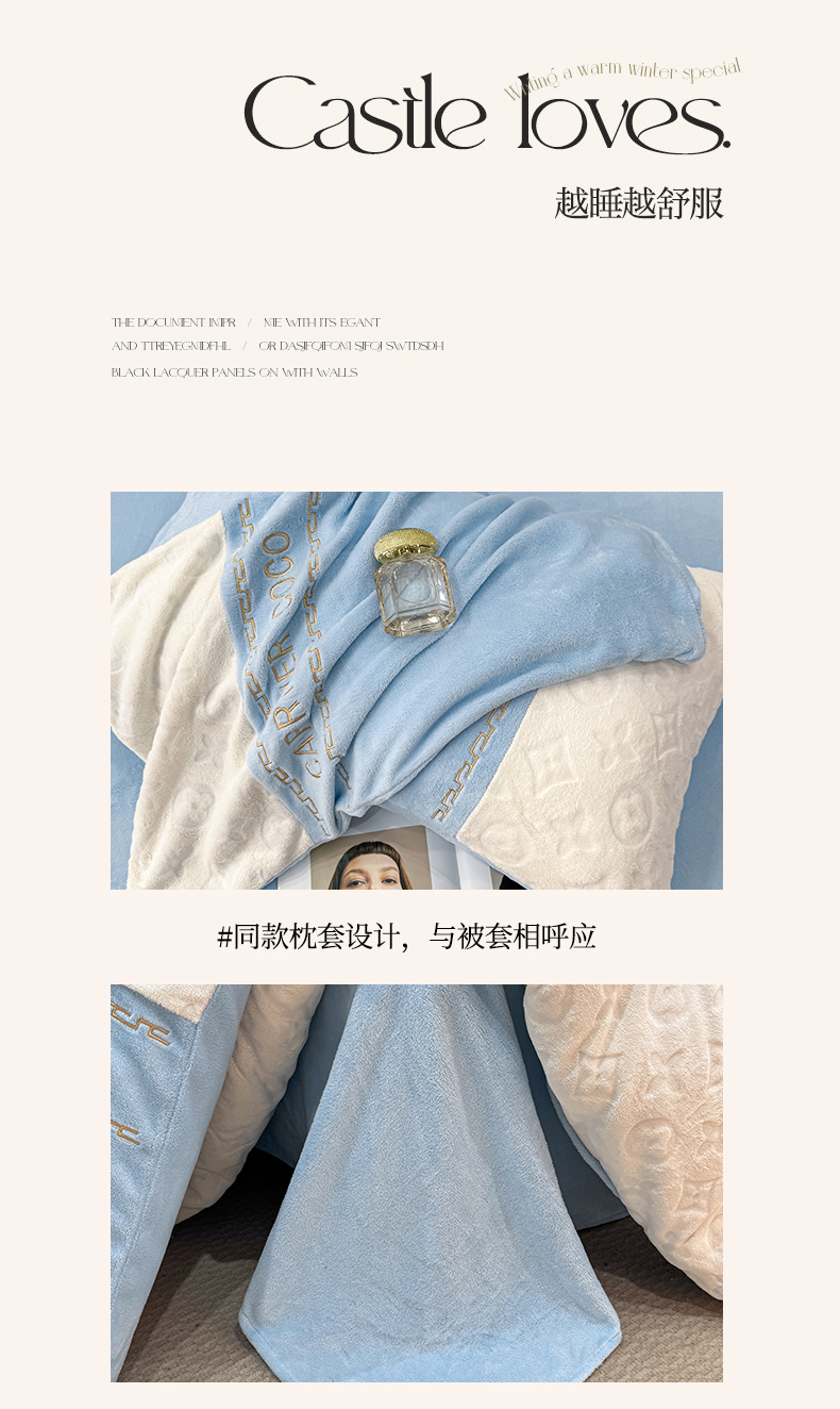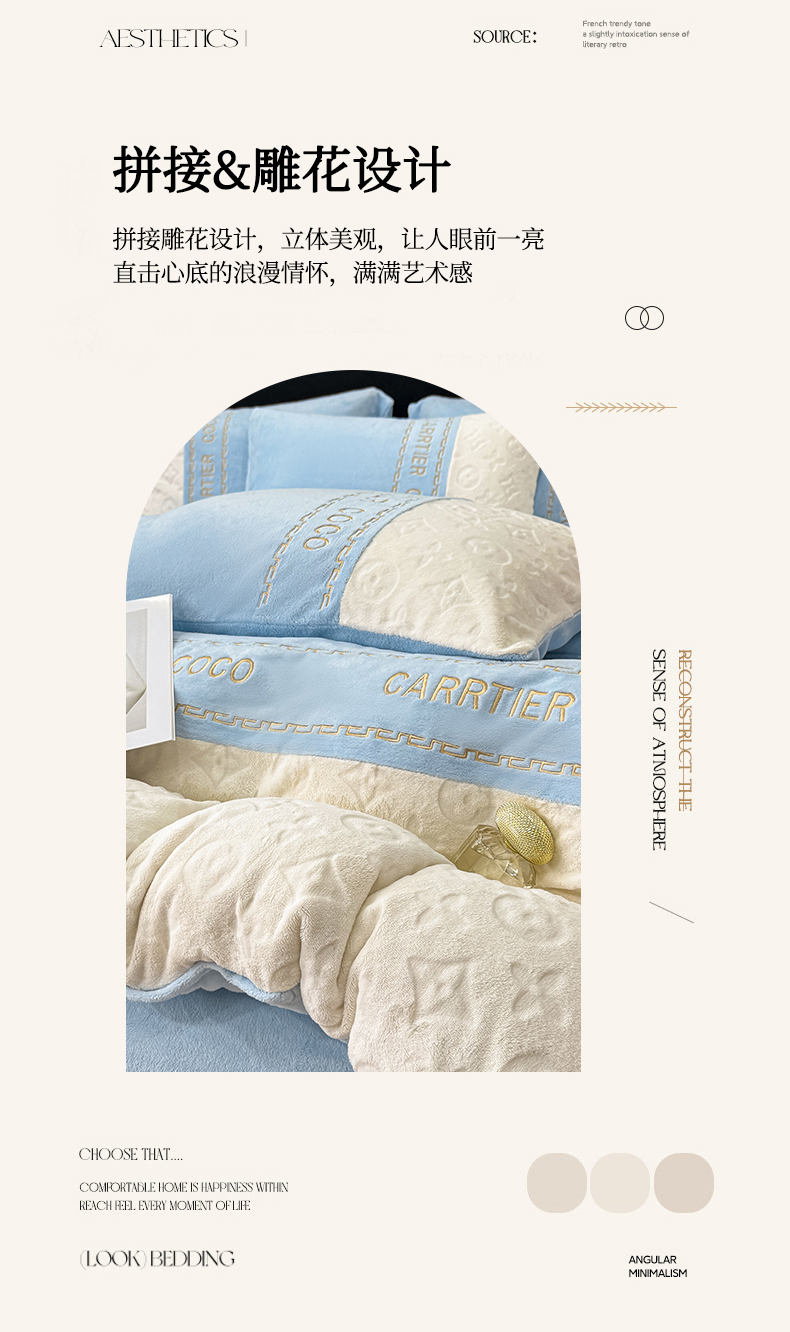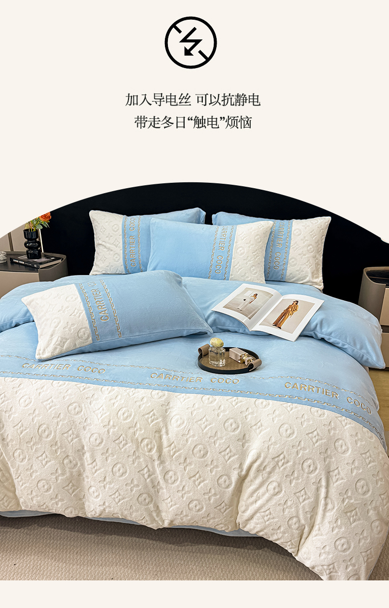 当前位置: 91家纺网 > 商品网购 > 床品套件 > 四件套 > 牛奶绒四件套 > 灰鲸 2025新款牛奶绒拼接刺绣雕花四件套-威登 威登-繁星蓝
