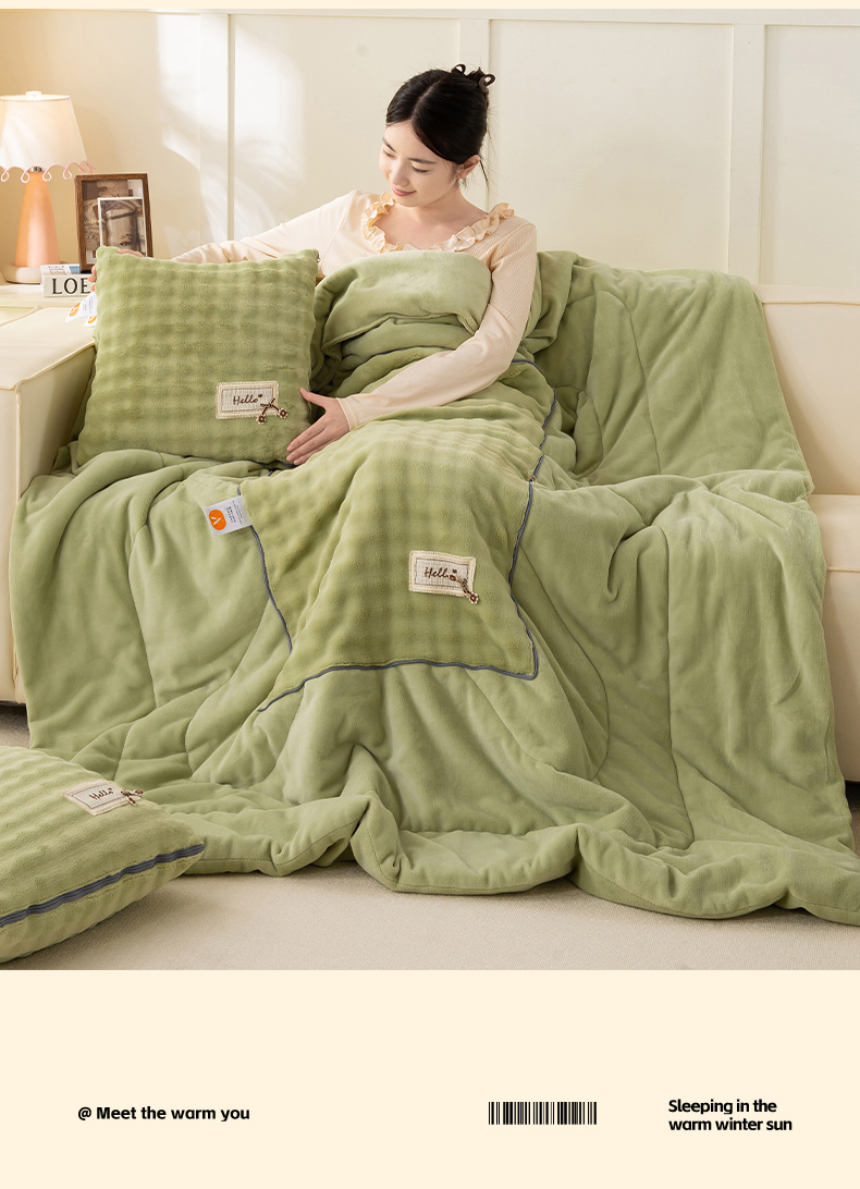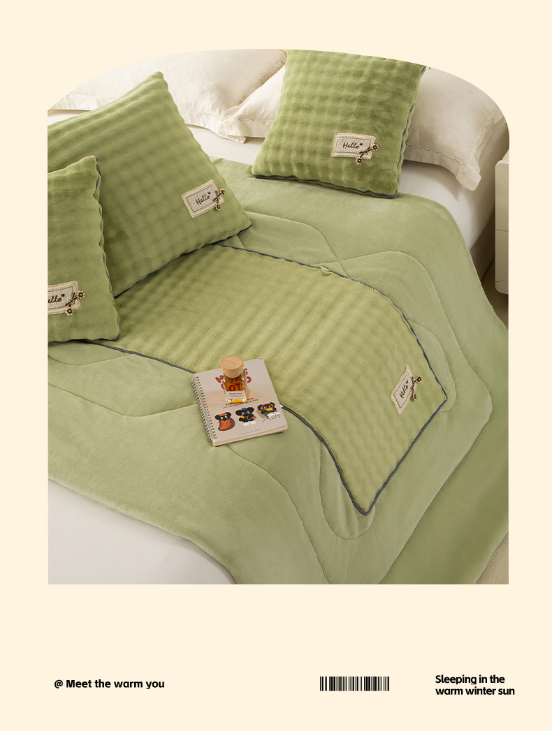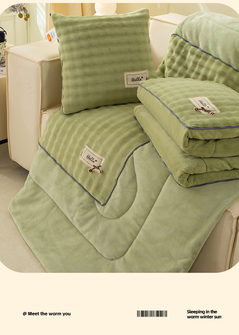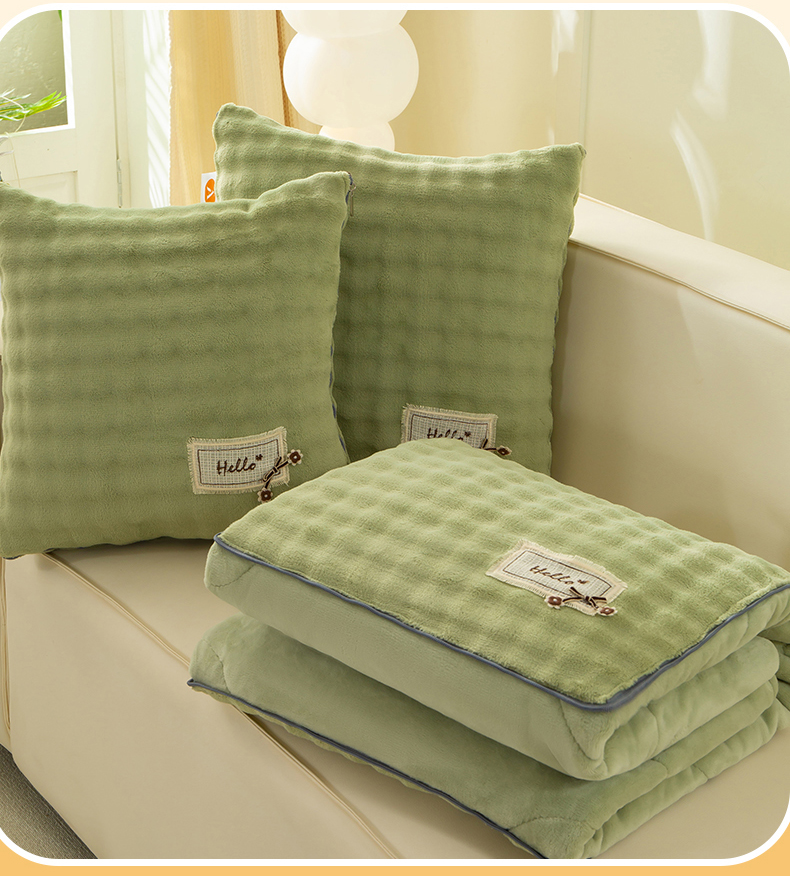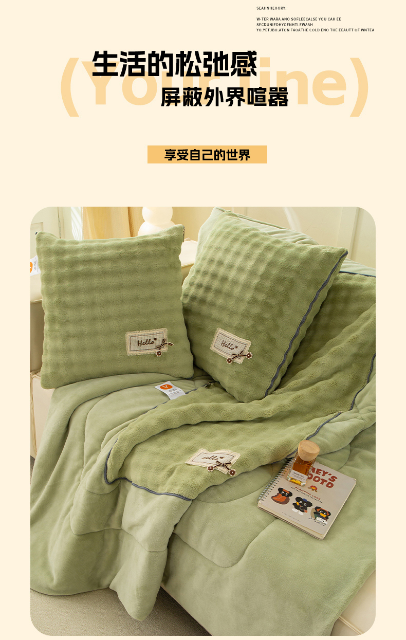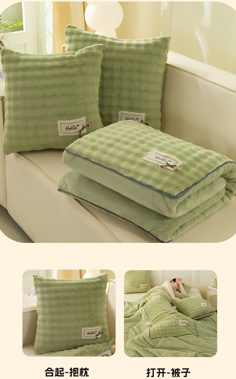 多今家纺 2025新款牛奶绒贴布抱枕被子-遇见系列 遇见-青麦绿