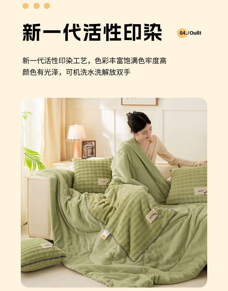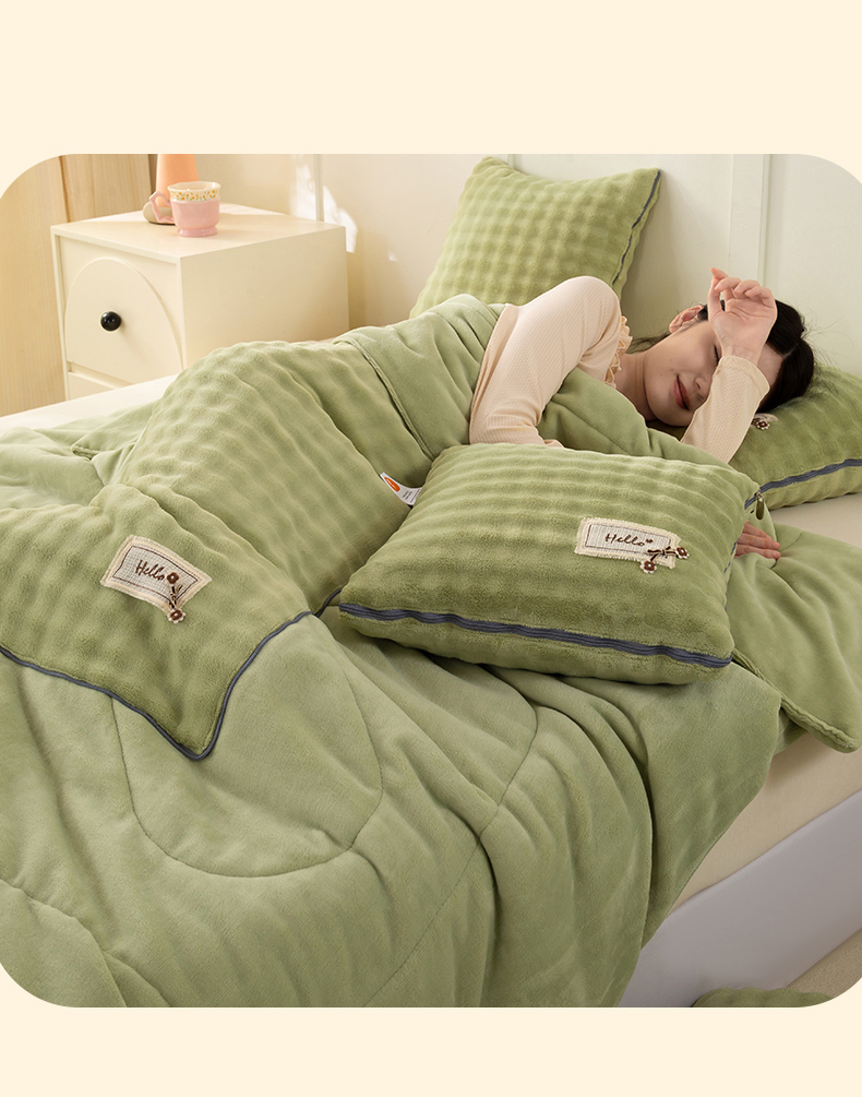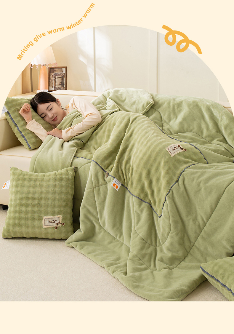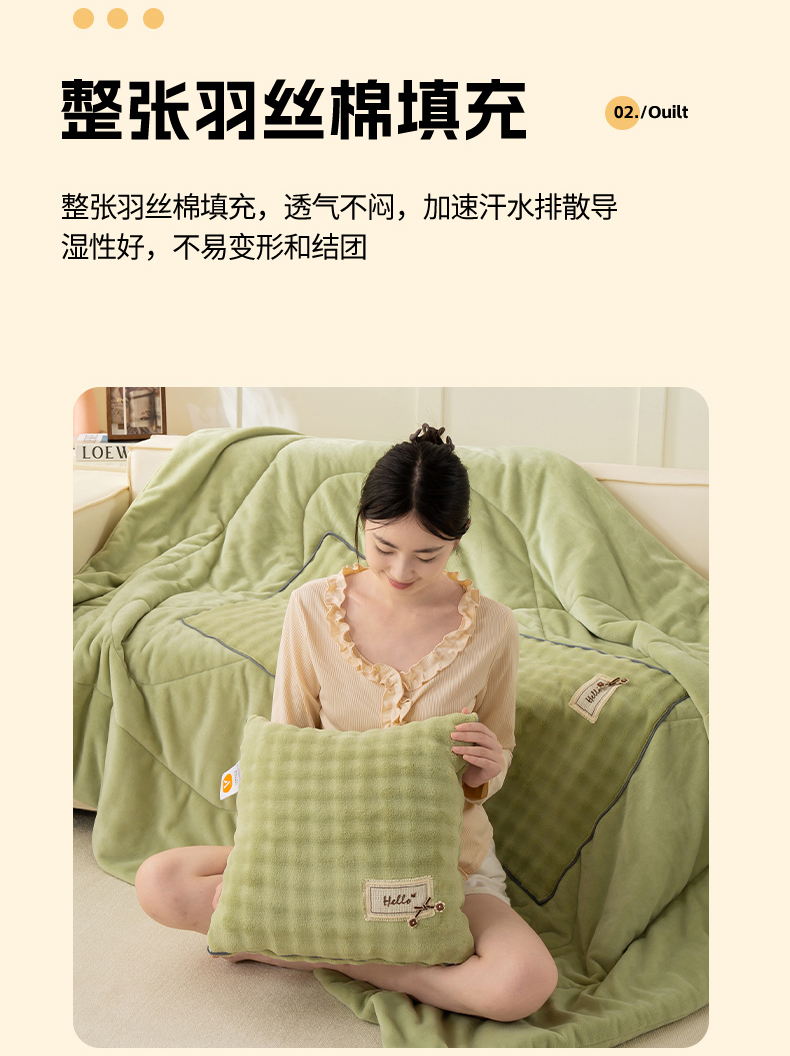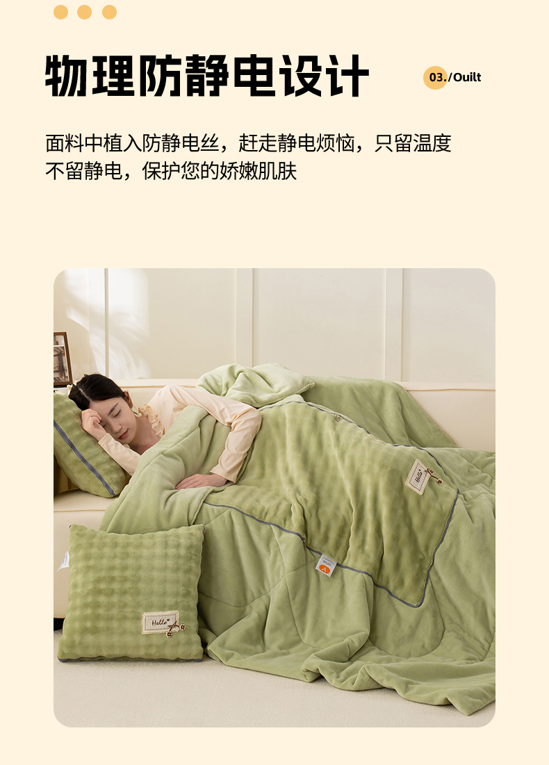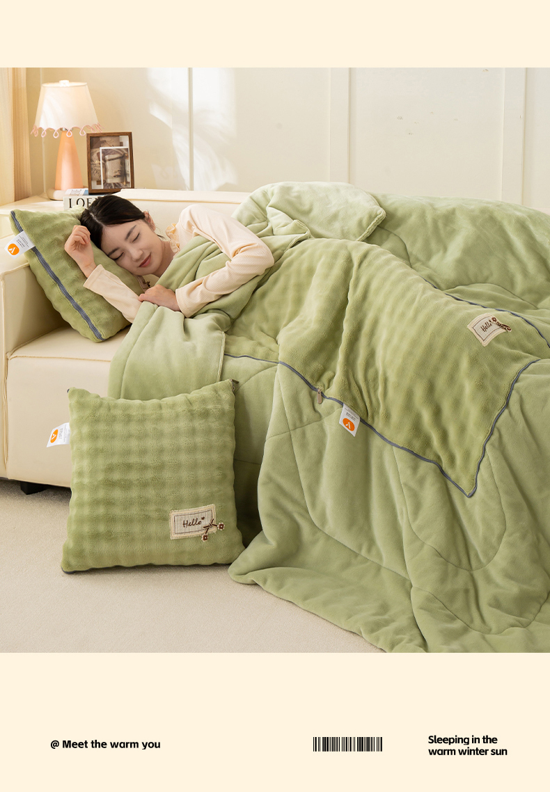 多今家纺 2025新款牛奶绒贴布抱枕被子-遇见系列 遇见-青麦绿