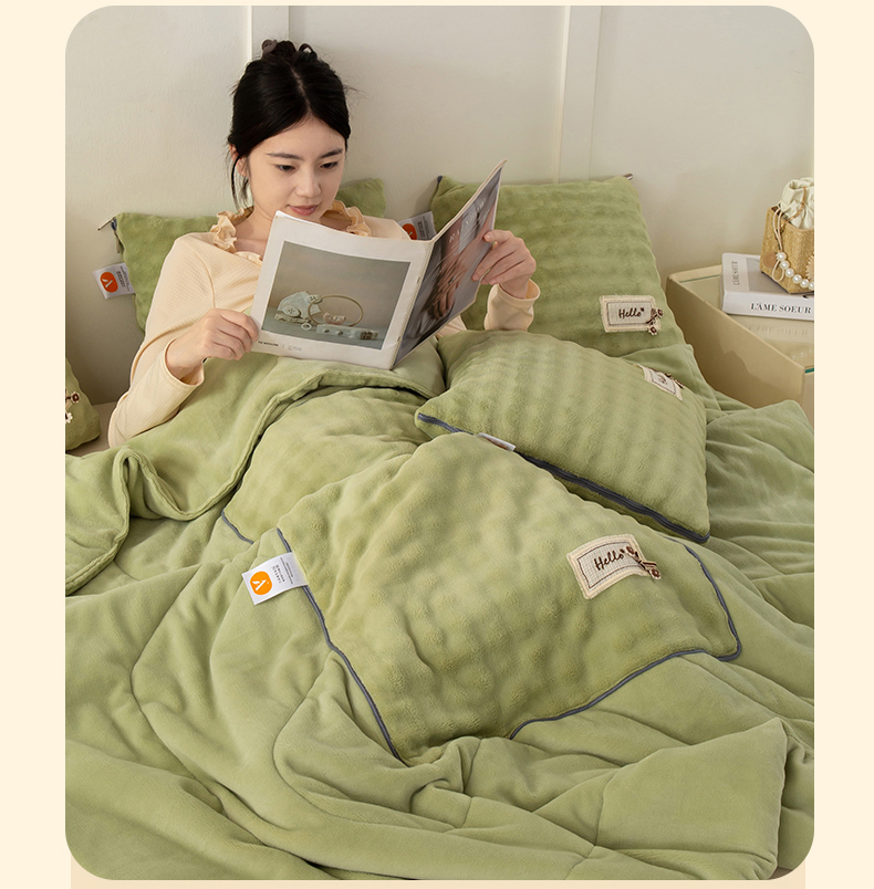 商品名称:多今家纺 2025新款牛奶绒贴布抱枕被子-遇见系列 遇见-青麦绿