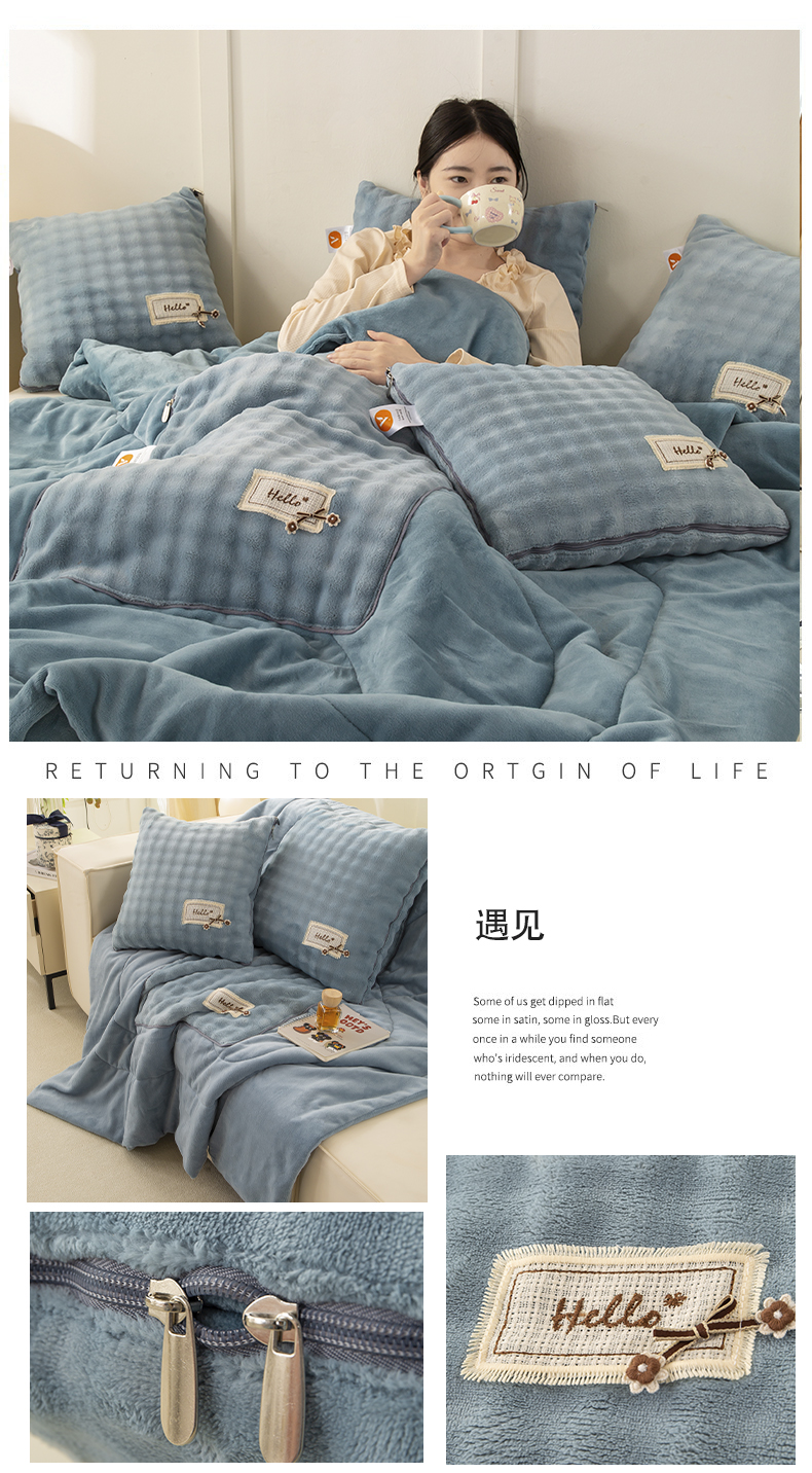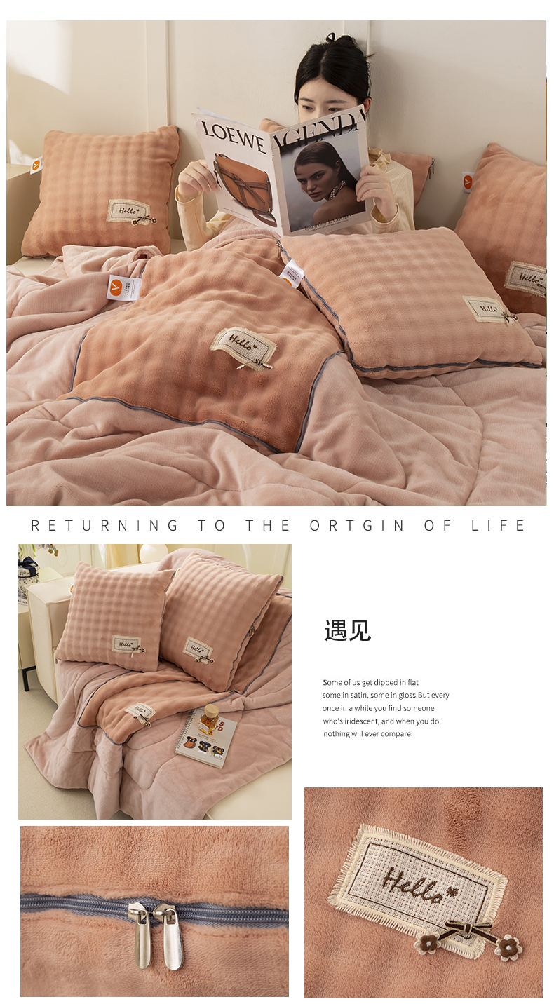 (总)多今家纺 2025新款牛奶绒贴布抱枕被子-遇见系列,遇见-淡粉,遇见-青麦绿,遇见-落霞橙,遇见-天空蓝,遇见-象牙黄,遇见-月光灰