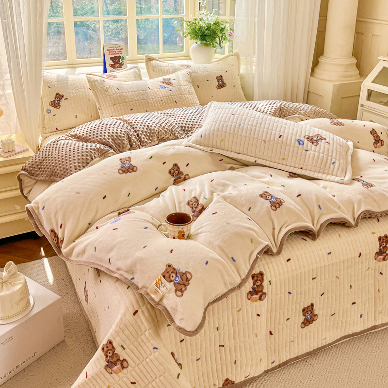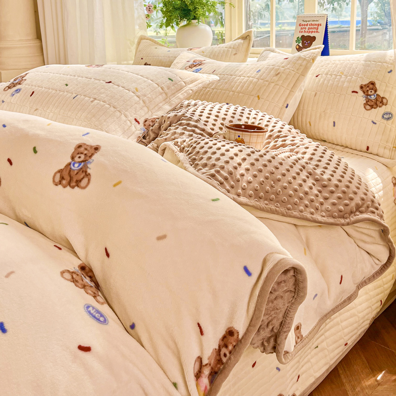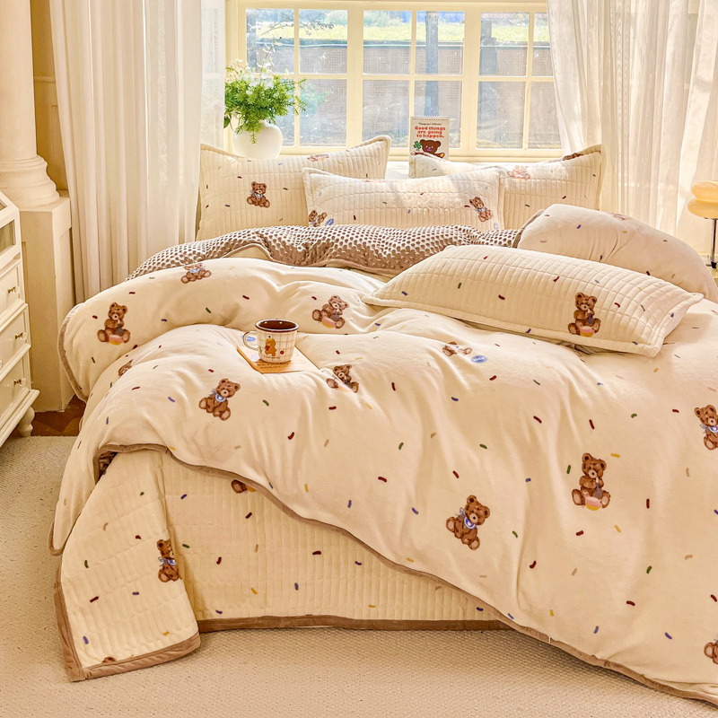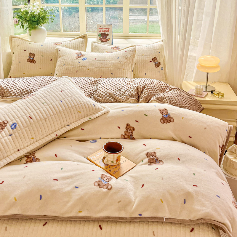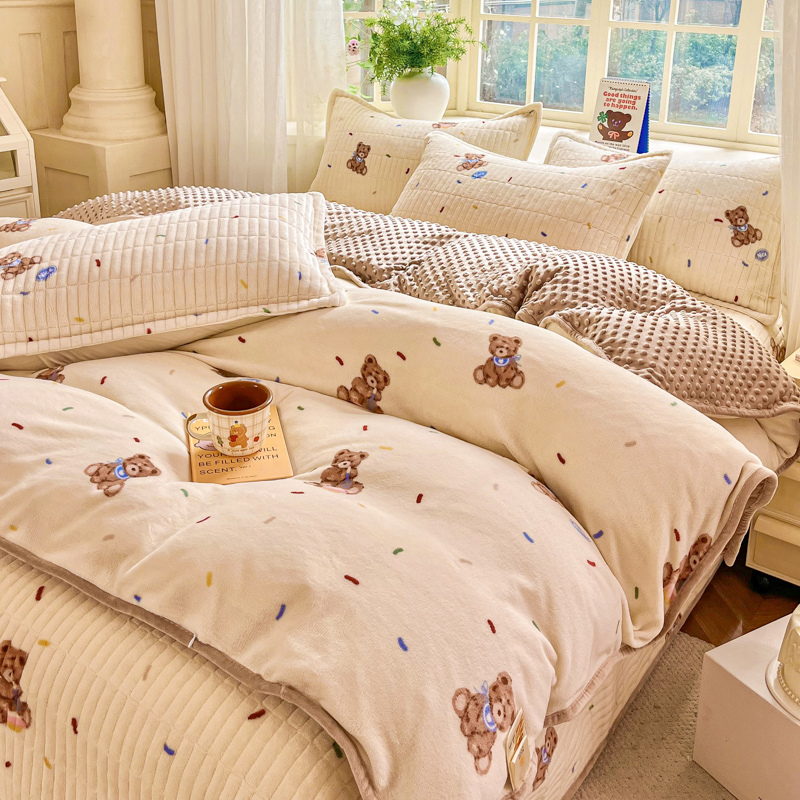 尚美家纺 2025冬季新品豆豆绒高克重床盖被套四件套 可爱熊