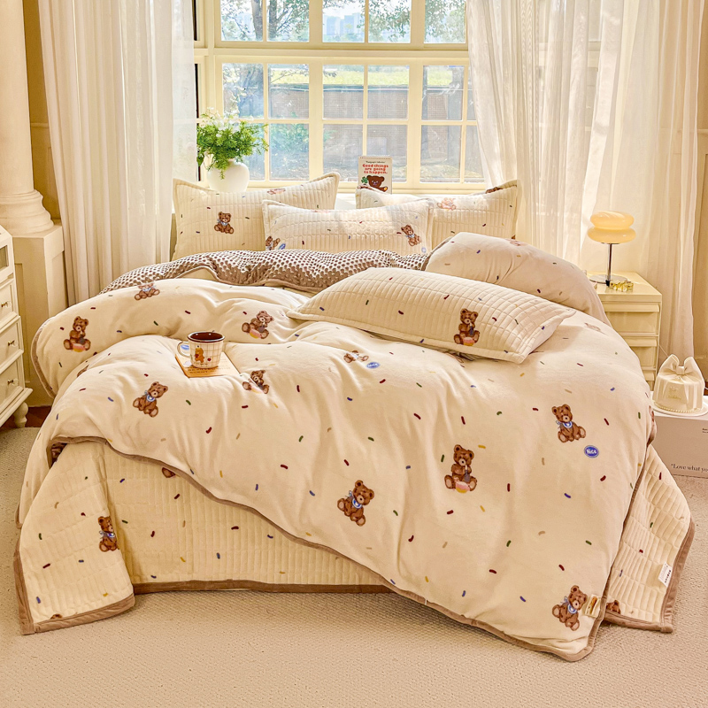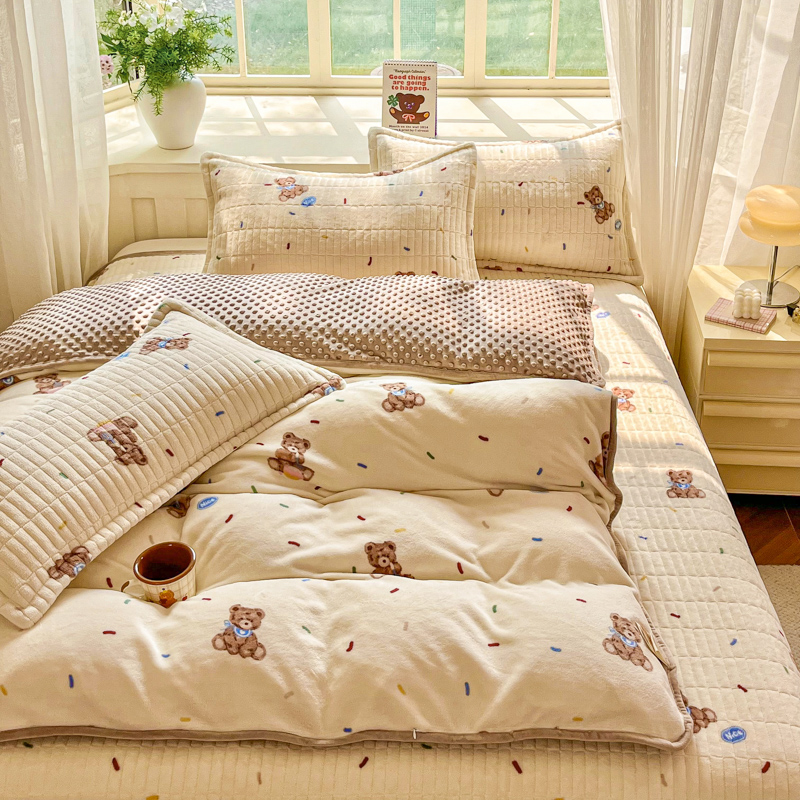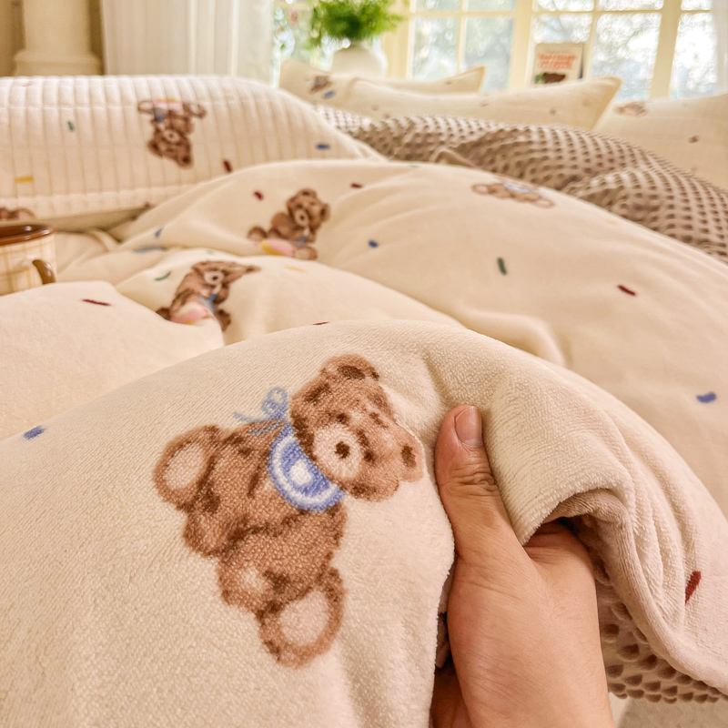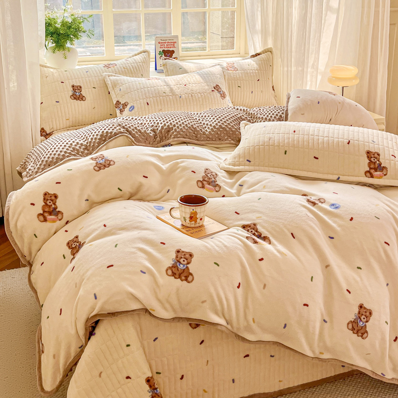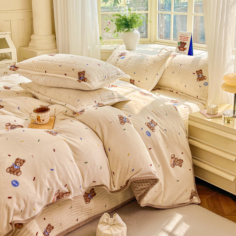 尚美家纺 2025冬季新品豆豆绒高克重床盖被套四件套 可爱熊