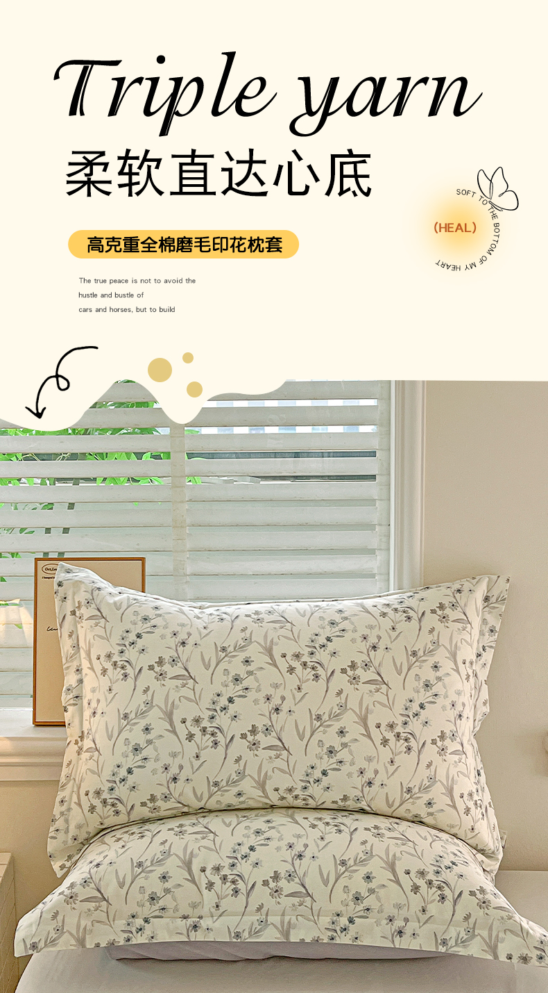 商品名称:依庭 2025新款高克重全棉纯棉磨毛印花单枕套 樱贝