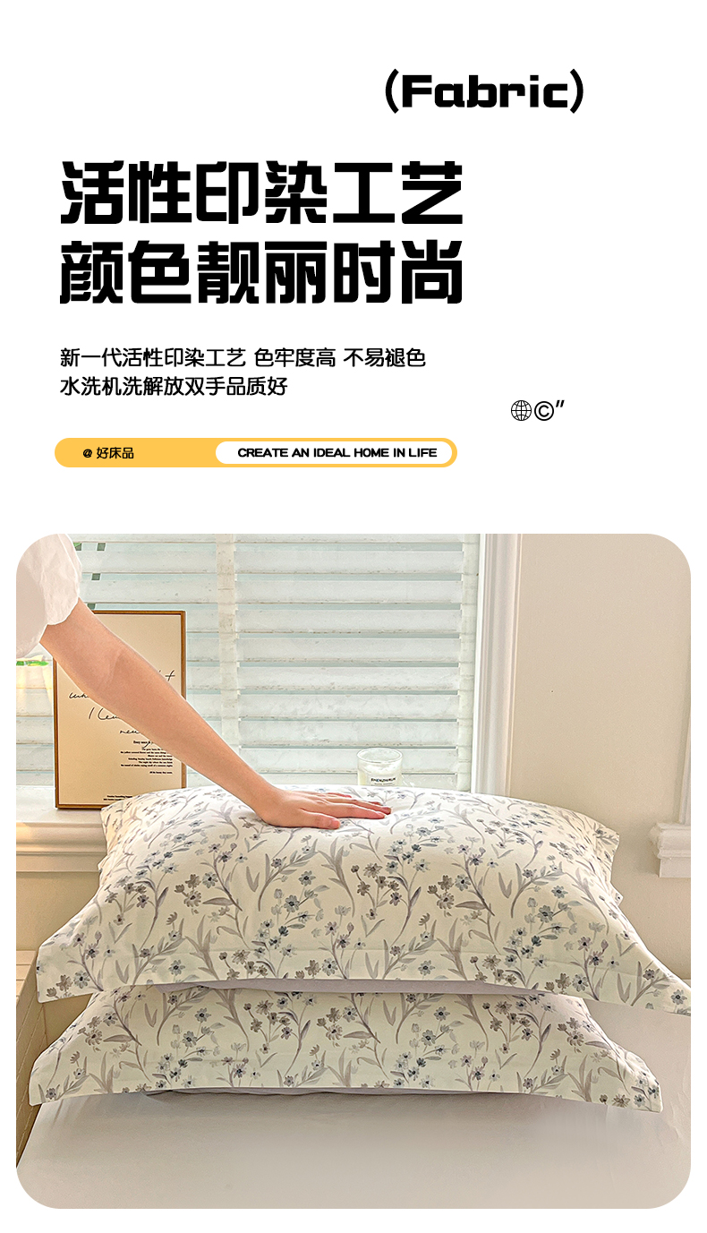 依庭 2025新款高克重全棉纯棉磨毛印花单枕套 樱贝