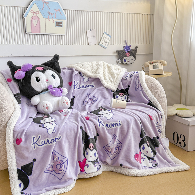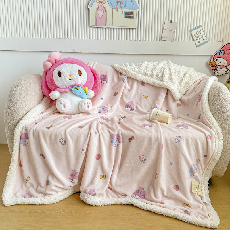 (总)花满路 2025新款亲肤舒适三丽鸥羊羔毛毯,格子布丁狗,卷卷大耳狗,泡泡库洛米,糯糯美乐蒂,暖暖玉桂狗,棉花美乐蒂,派对库洛米,乖巧kt,俏皮kt,甜蜜kt,团团布丁狗,kt伙伴