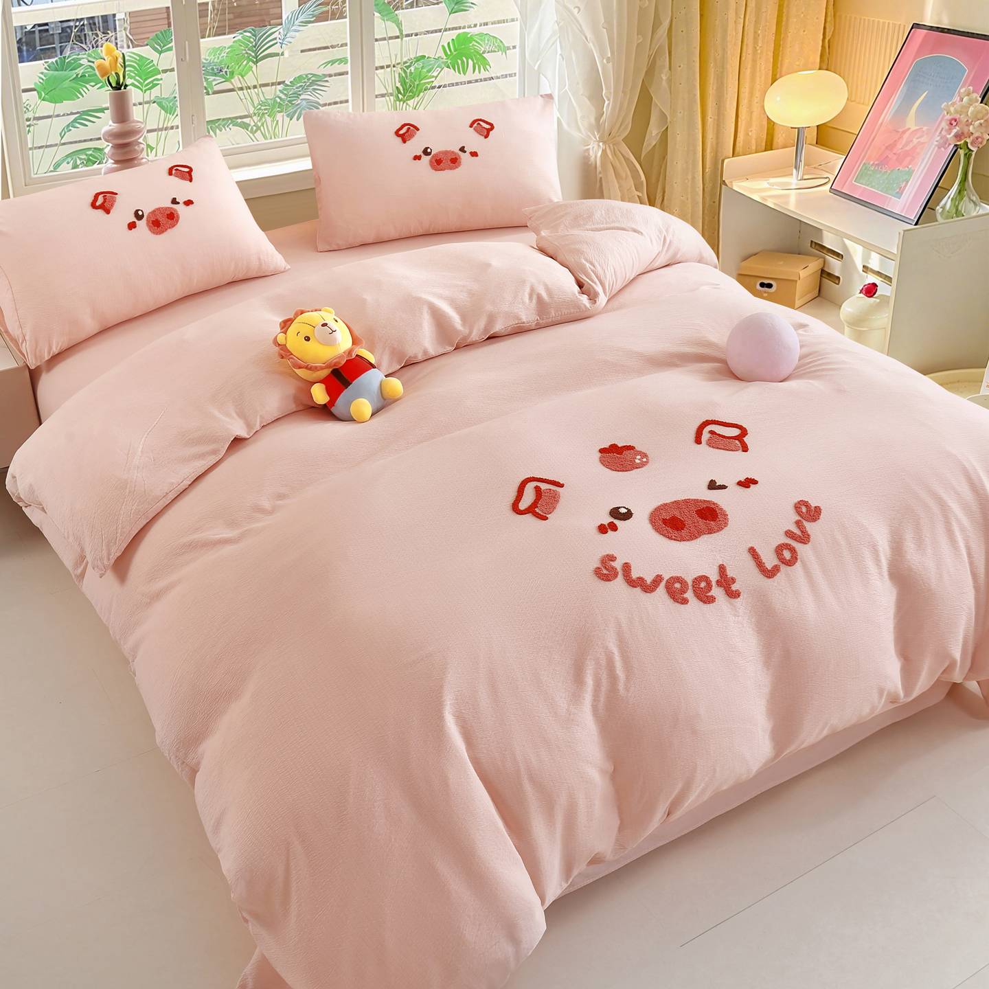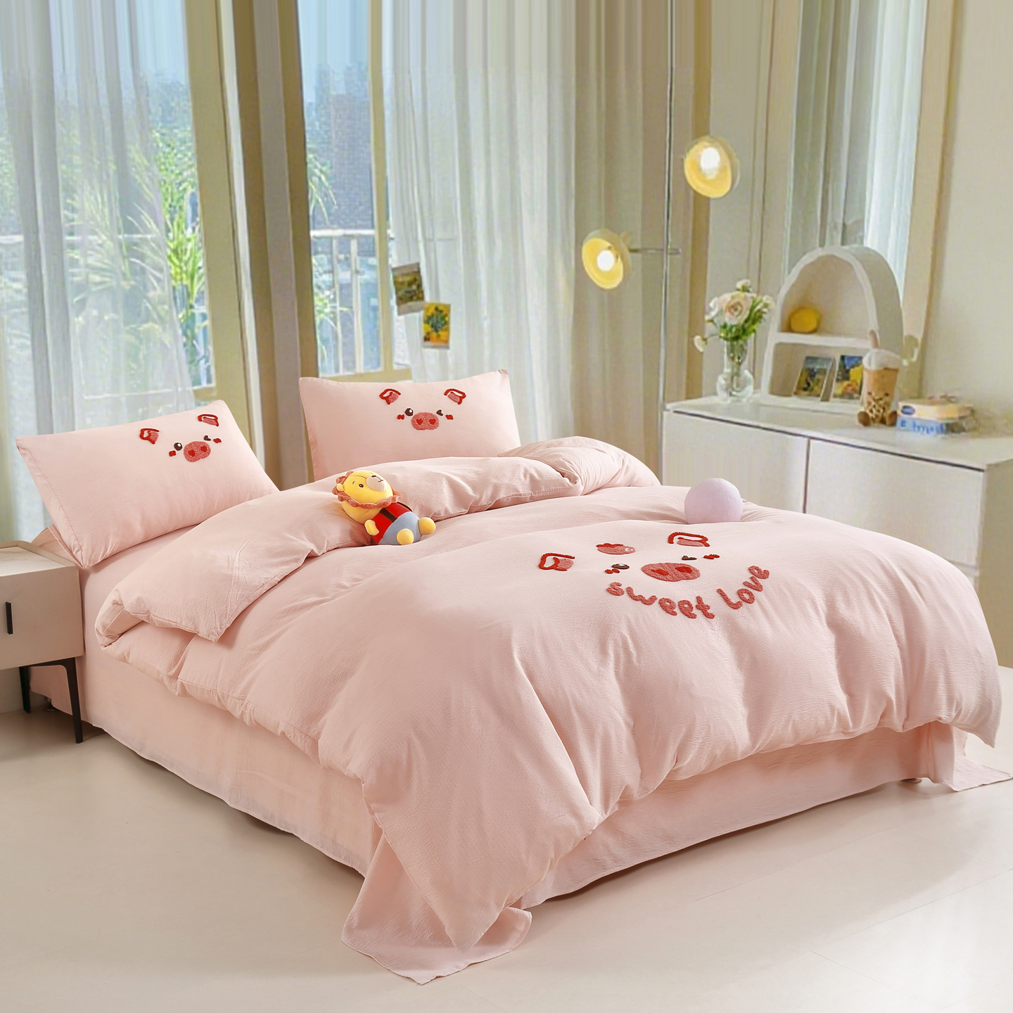 当前位置: 91家纺网 > 商品网购 > 床品套件 > 四件套 > 毛巾绣四件套 > 恋之语 2025新款皱皱纱木棉毛巾绣四件套及单被套系列-可爱猪 可爱猪-粉色