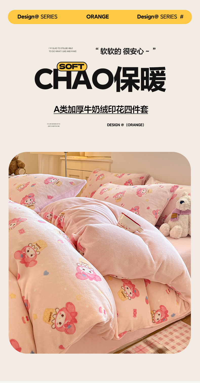 当前位置: 91家纺网 > 商品网购 > 床品套件 > 四件套 > 牛奶绒四件套 > 瑞钰 2025新款A类加厚牛奶绒印花四件套 小美甜品屋