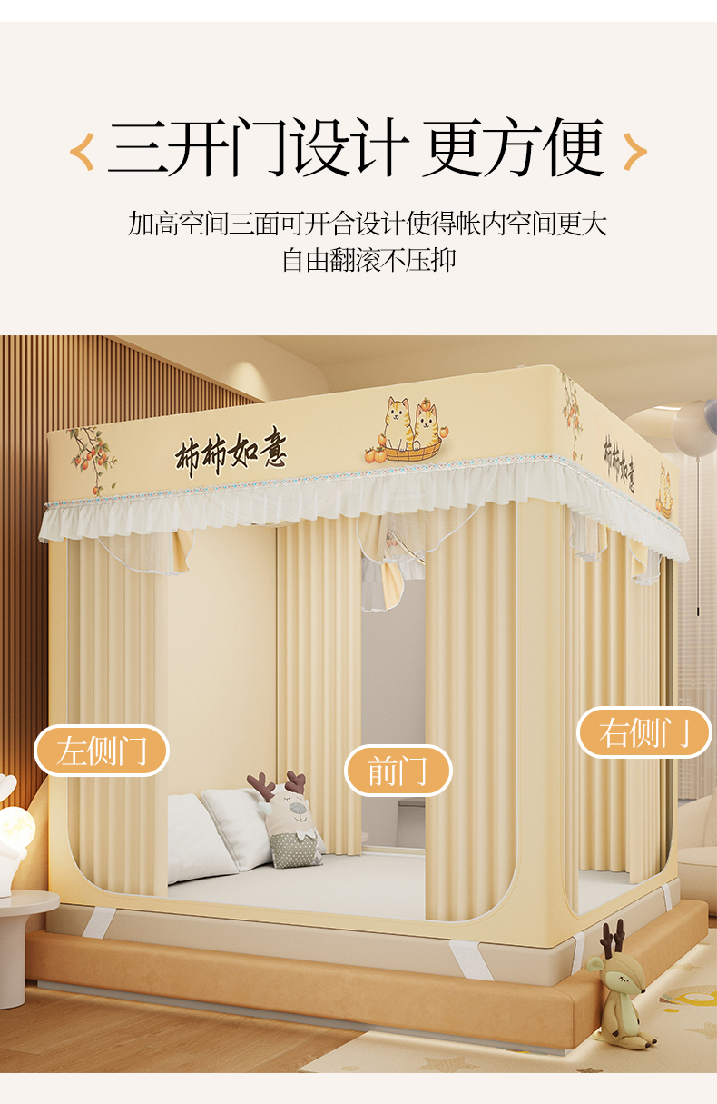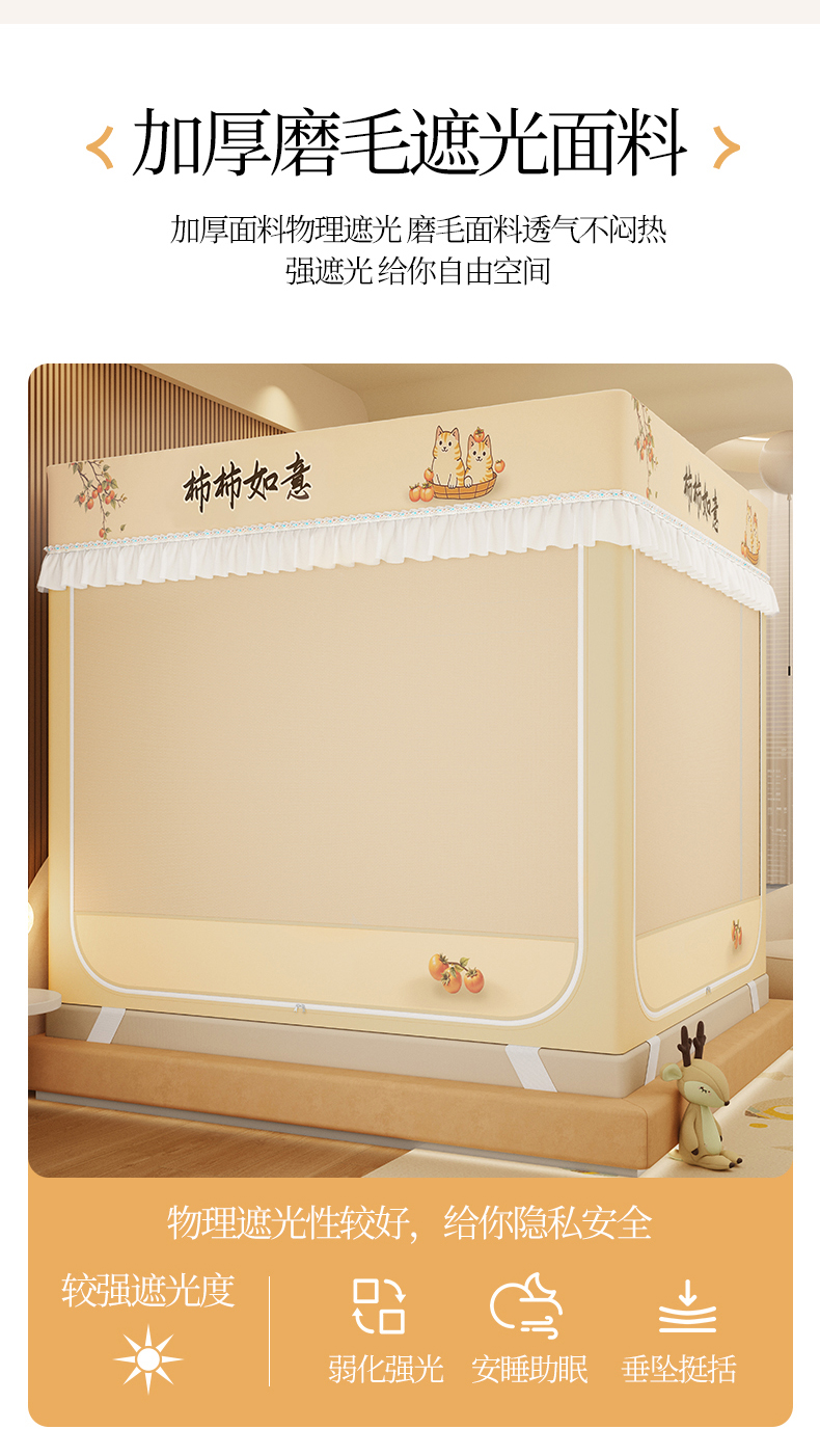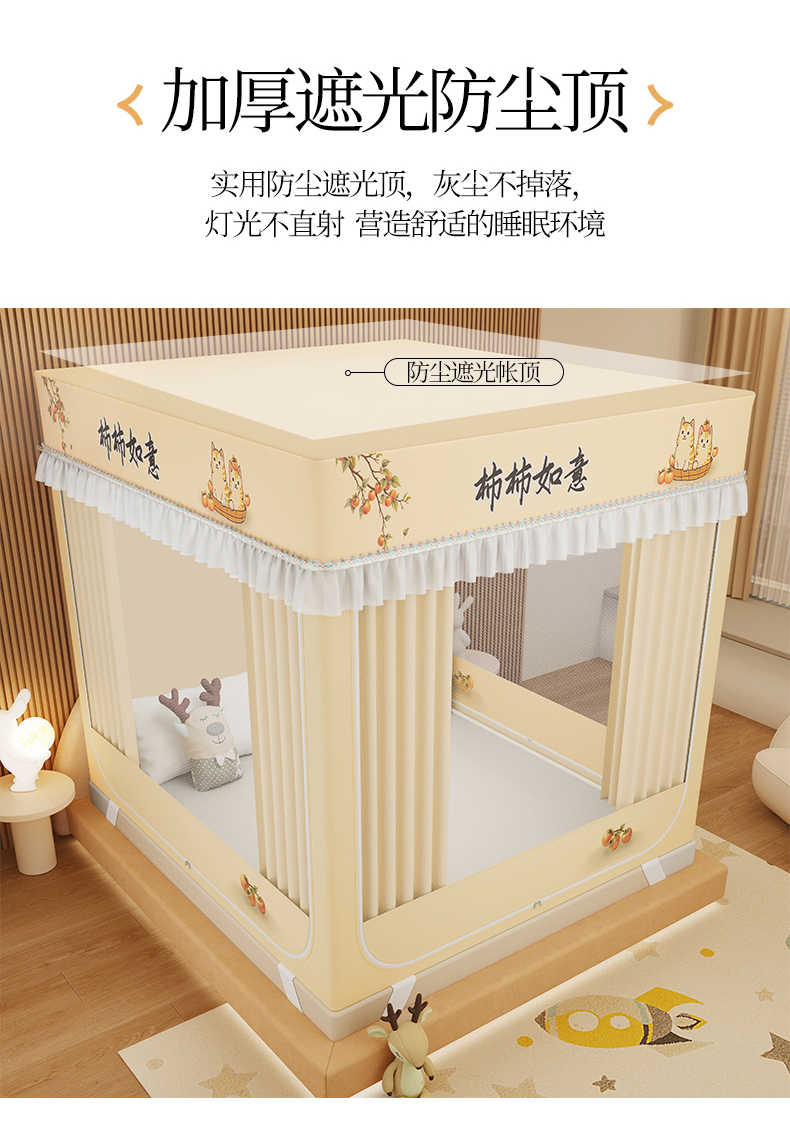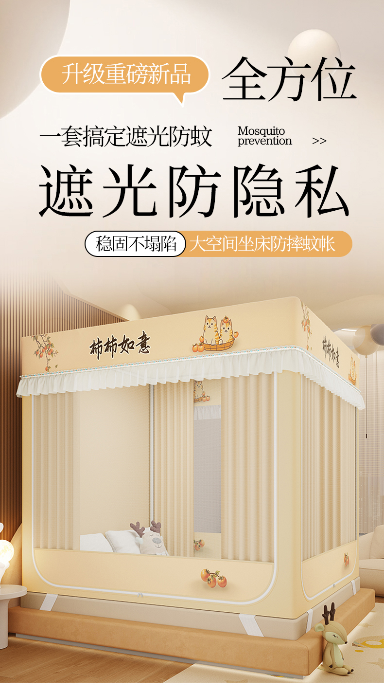 当前位置: 91家纺网 > 商品网购 > 床上用品 > 蚊帐 > 坐床式蚊帐 > 艾晶美家纺有限公司 2025新款坐床家用卡通床帘遮光蚊帐 柿柿如意