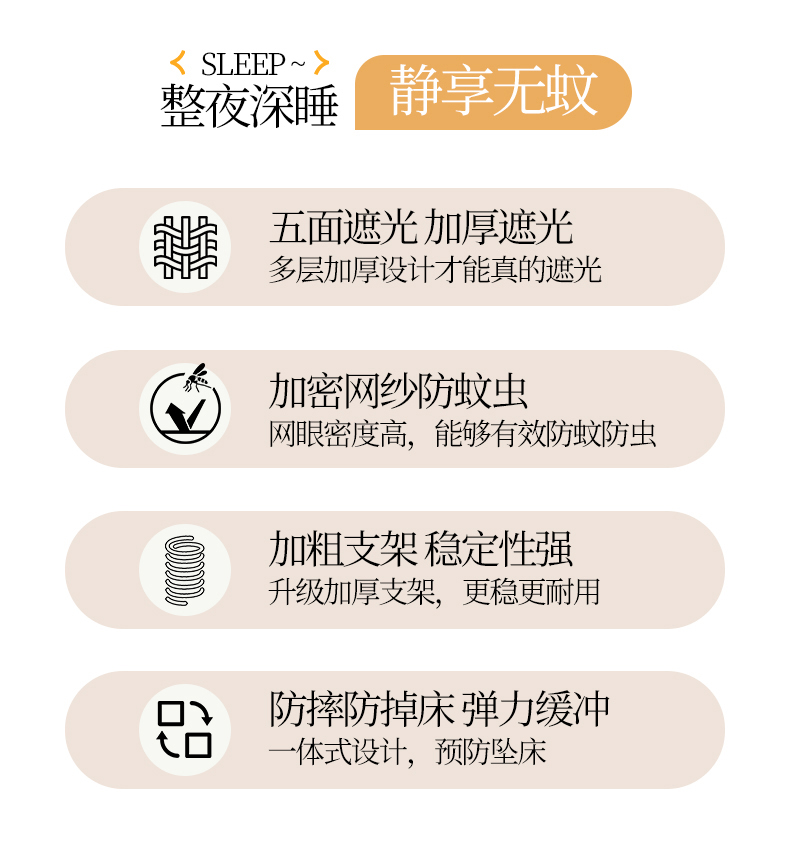 180x200蚊帐+加厚弹扣扁管支架+布帘 | ¥155.00 |