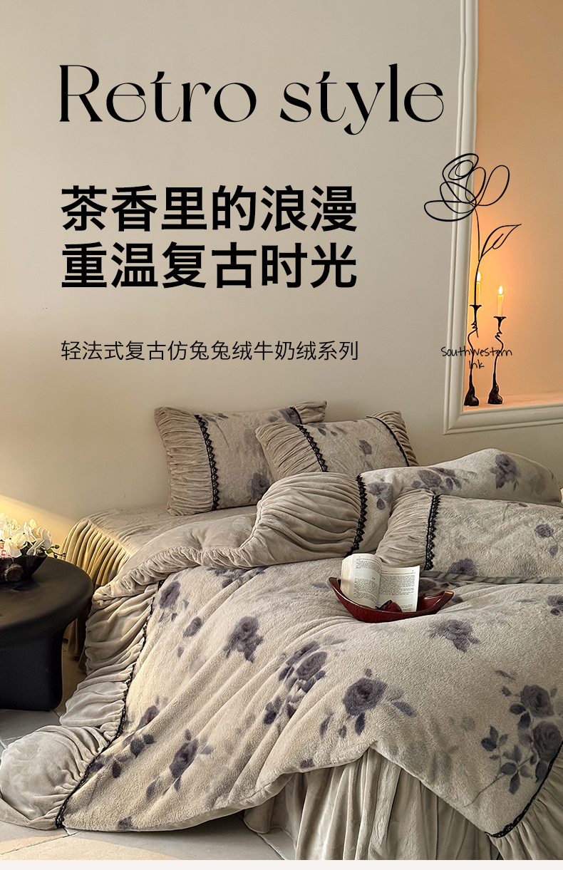 当前位置: 91家纺网 > 商品网购 > 床品套件 > 四件套 > 牛奶绒四件套 > (总)婳庭家居 2025新款复古仿兔兔绒牛奶绒浮光四件套