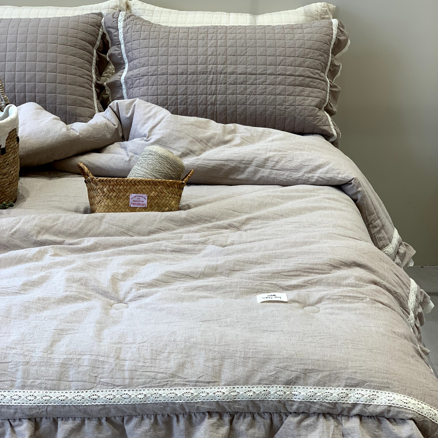 (总)汇庭 2025秋冬新款麻三月床盖三件套系列,黑点点,花絮粉,锦绣,梨花雨,青舍,三月,苏梨士,夜曲,组合