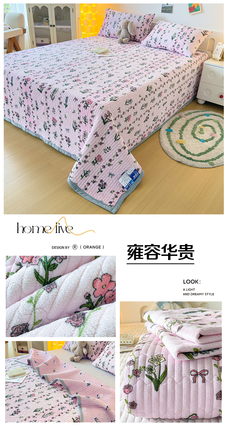 (总)棉乐町家居 2025新款高克重牛奶绒夹棉印花床盖,爱心满满,蝶恋花,薄荷玫瑰,豆蔻年华,蝴蝶粉,格调,国色天香,花丛绿,花丛紫,花开盛世,花之物语,花中精灵,快乐熊,拉菲格,玫瑰人生,梦中花,摩伊,南瓜派对,蔷薇紫,清新淡雅,少女心,生日party,太阳花,甜心熊粉,甜心熊咖,小资生活,叶语柔情,雍容华贵